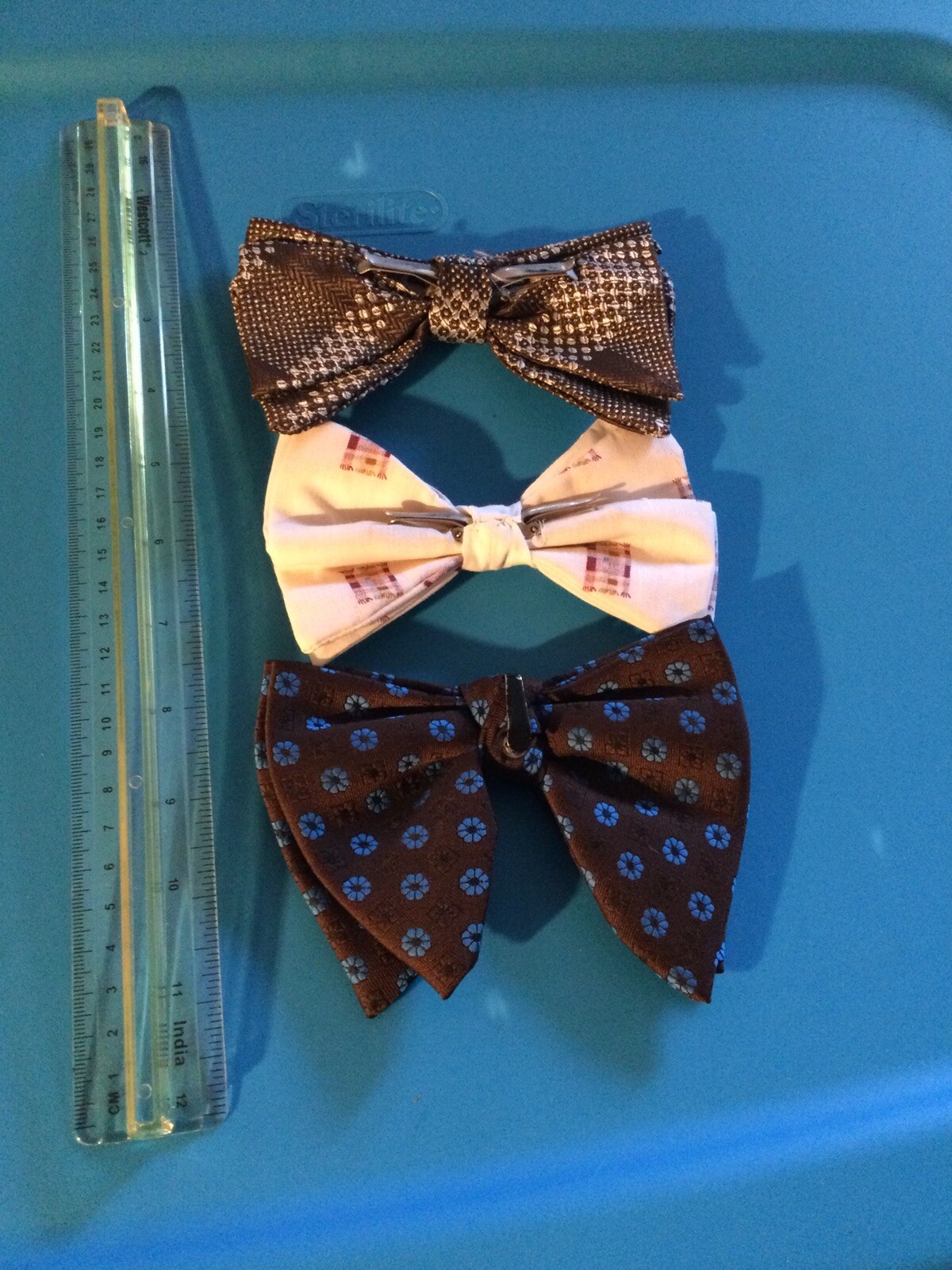 как выглядит One Vintage Jumbo Butterfly Flutter Bow Tie And Two Other Pre-Tied - Set Of 3 фото