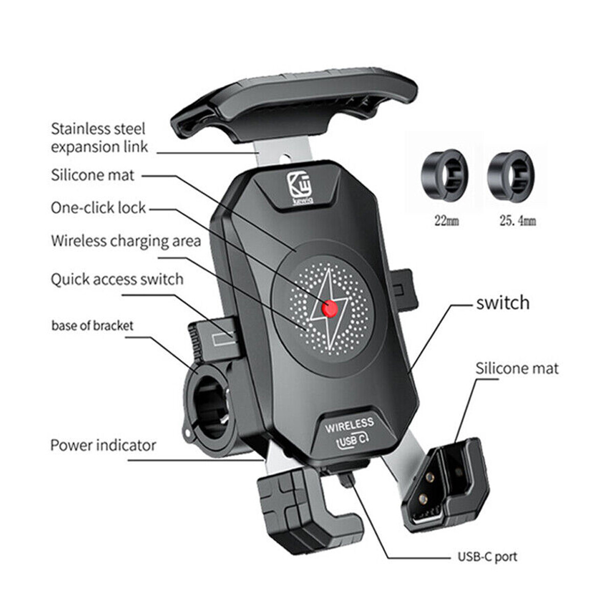 Upgrade Motorcycle Phone Holder 15W Wireless Charger Stand Motorbike Handlebar