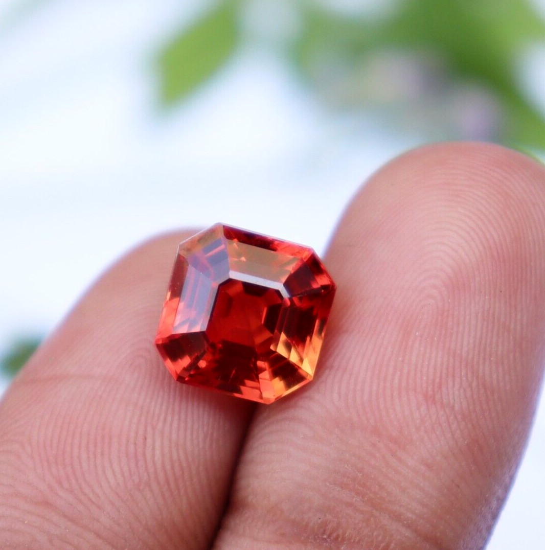 Radiant Shape 7.15 Ct AAA Natural Flawless Ceylon Orange Sapphire Ring Size