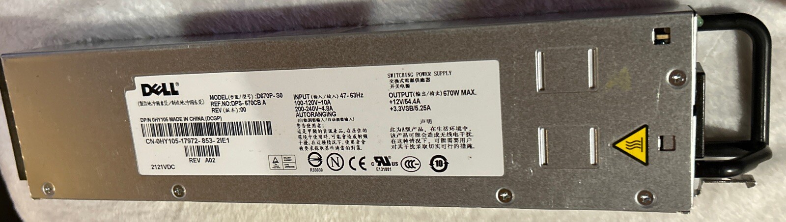 как выглядит Dell PowerEdge 1950 670W D670P-S0 Power Supply Ref : DPS-670CB A, DP/N: 0HY105 фото