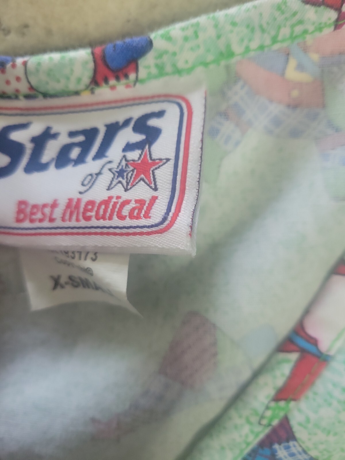 Stars Of Best Medical Christmas Scrubs Top Santa Wreath Gift Size X Small XS