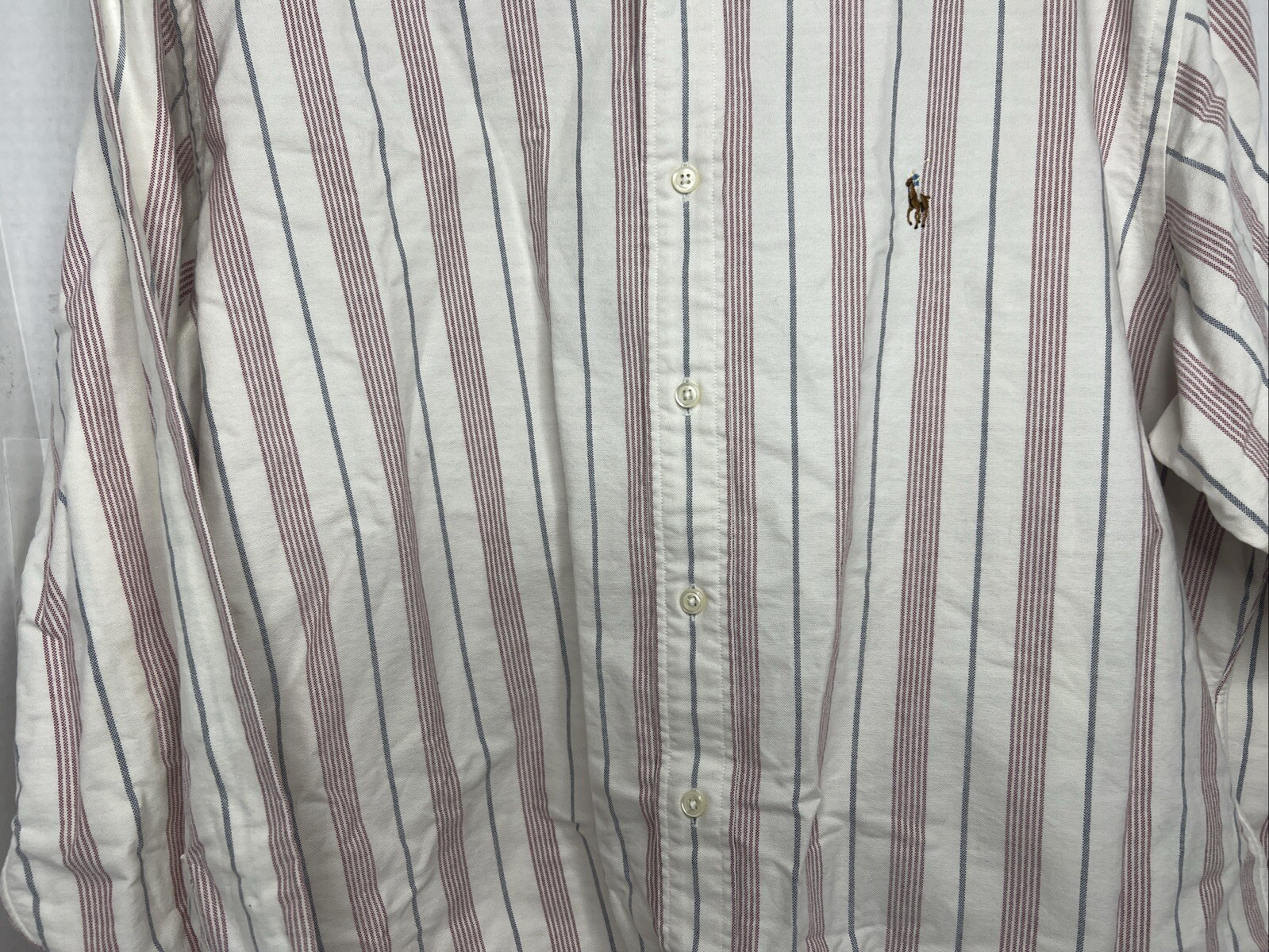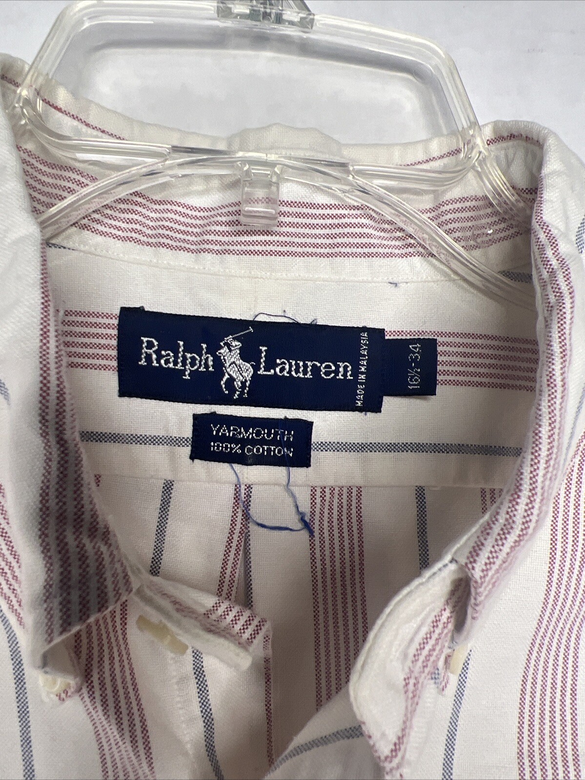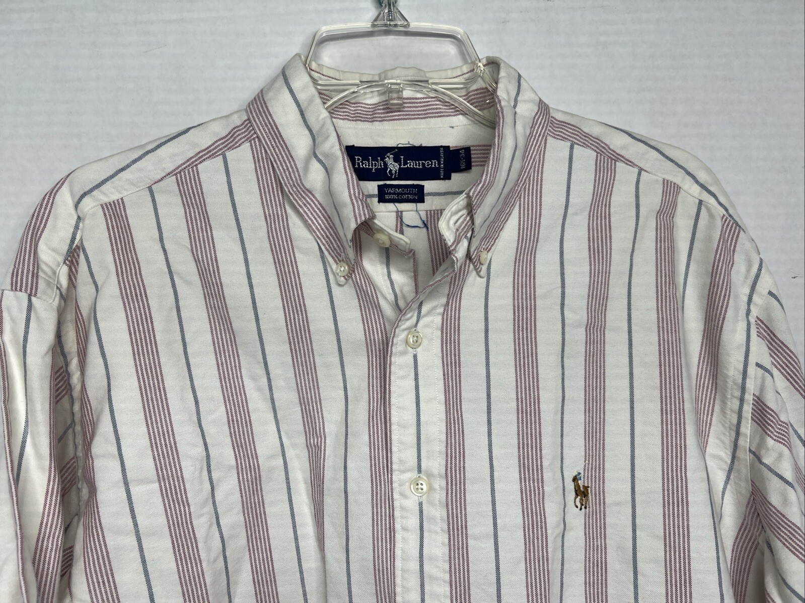 Ralph Lauren Button Down Shirt Yarmouth Size 16 1/2 - 34 White Red Gray Striped
