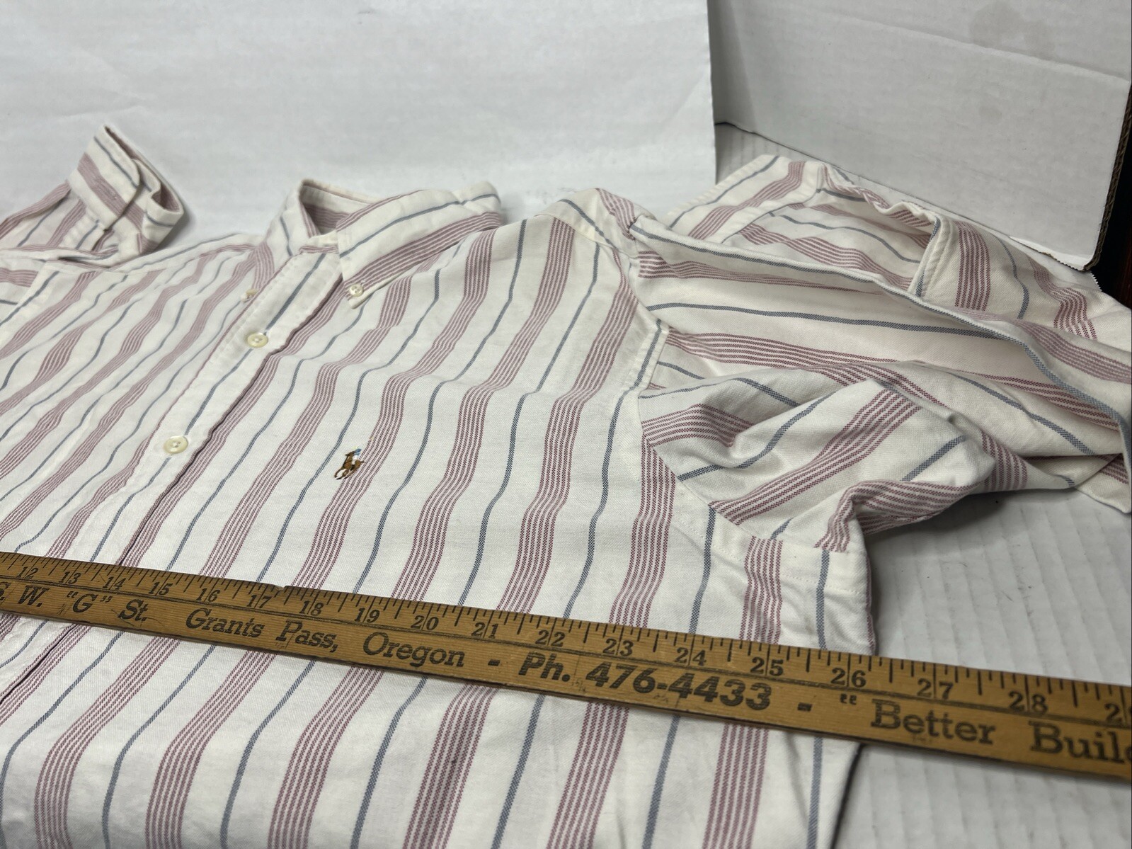 как выглядит Ralph Lauren Button Down Shirt Yarmouth Size 16 1/2 - 34 White Red Gray Striped фото