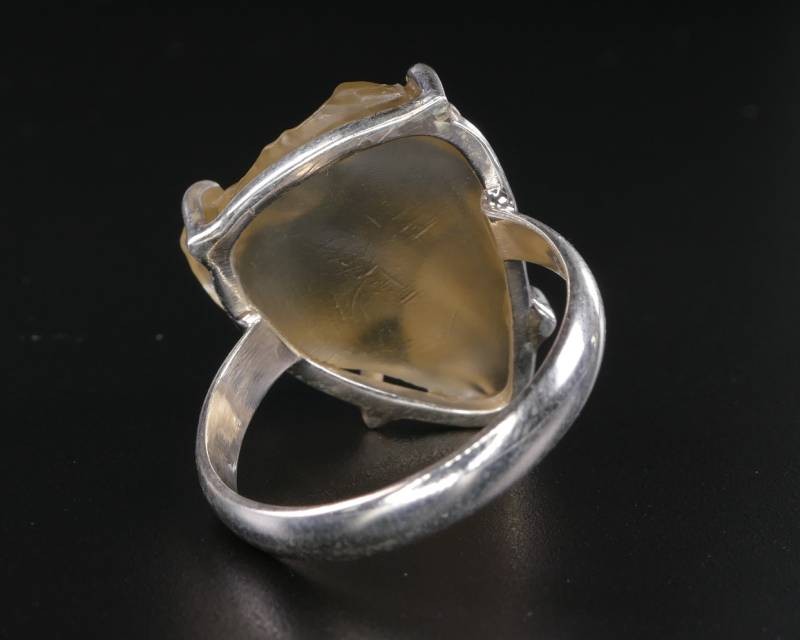 как выглядит Raw Libyan Desert Glass Sterling Silver Ring size 62 US 10 COA Box pw фото