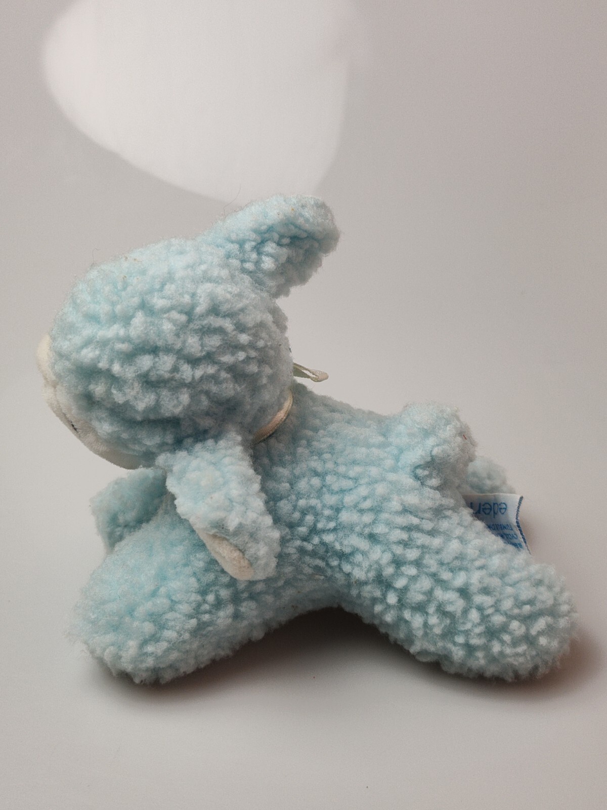 Vintage 80's Eden Baby Blue Fleece Plush Mini Lamb Rattle Toy
