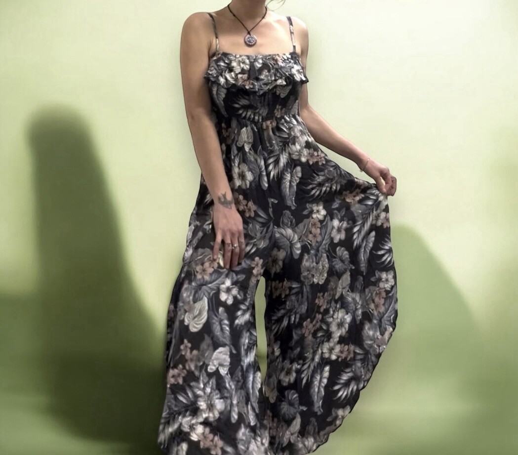 CROSSROADS Floral Navy Blue Flowing Hippie Boho Dress Jumpsuit