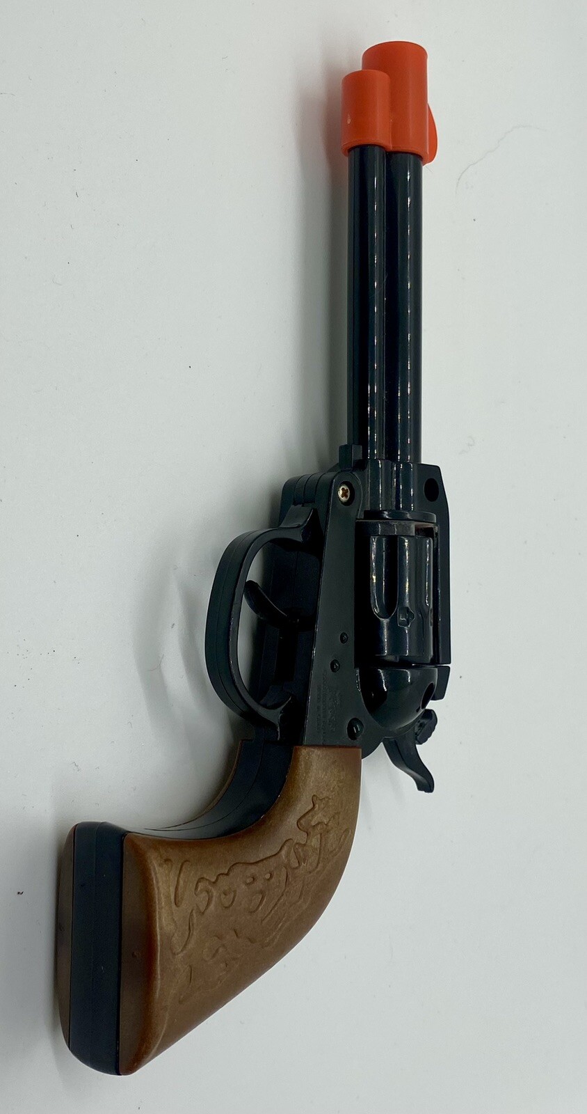 VTG Toy Cap Gun Pistol Brown Handle And Black Barrel Plastic Round Ammunition