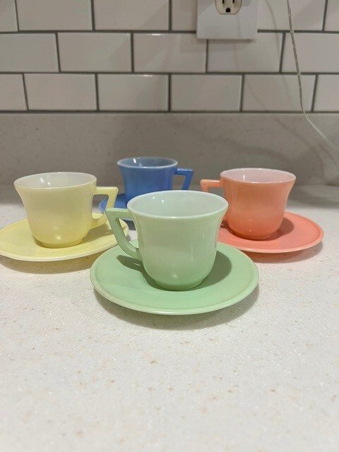 Childrens Hazel Atlas Moderntone 1950s Little Hostess 8 Pc Glass Tea Set