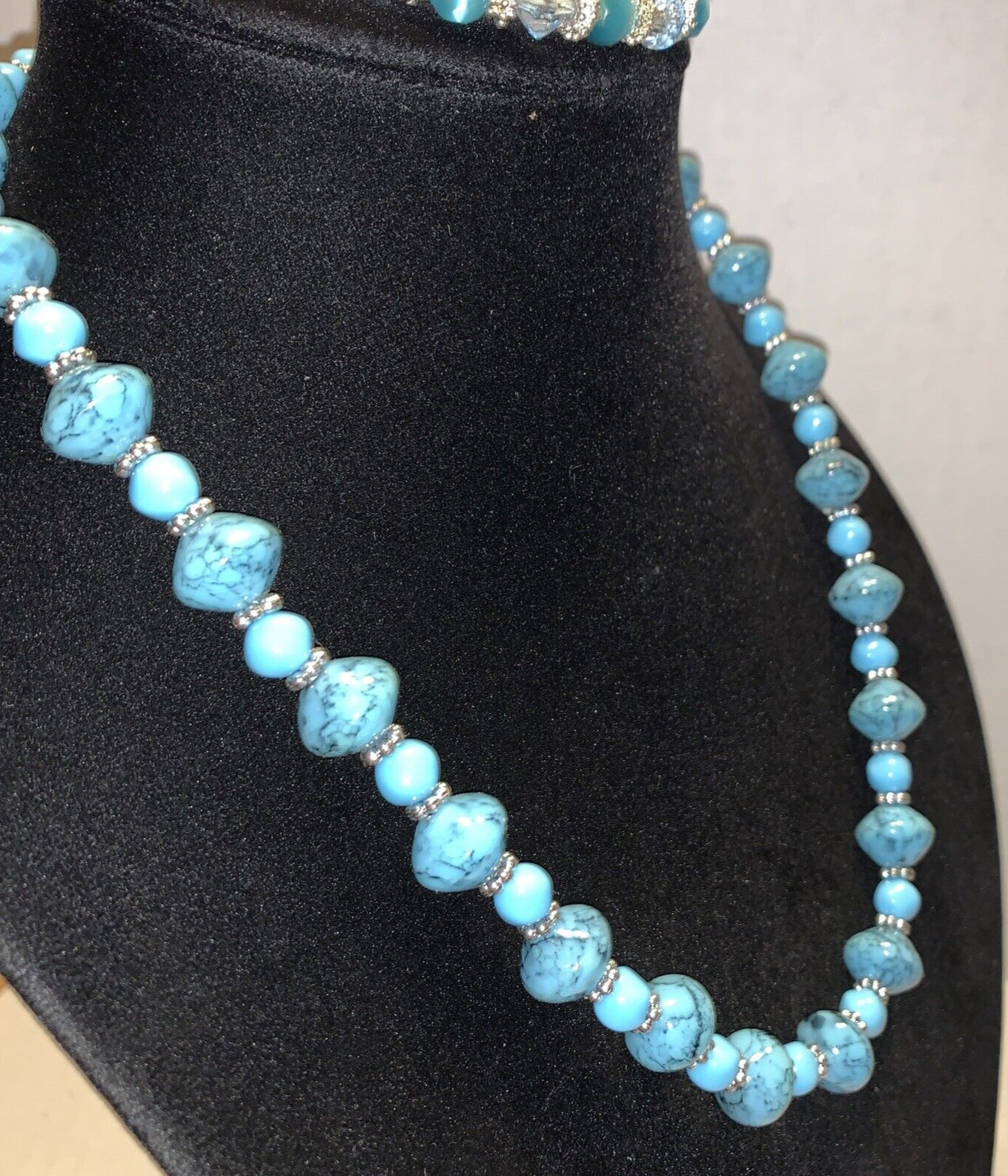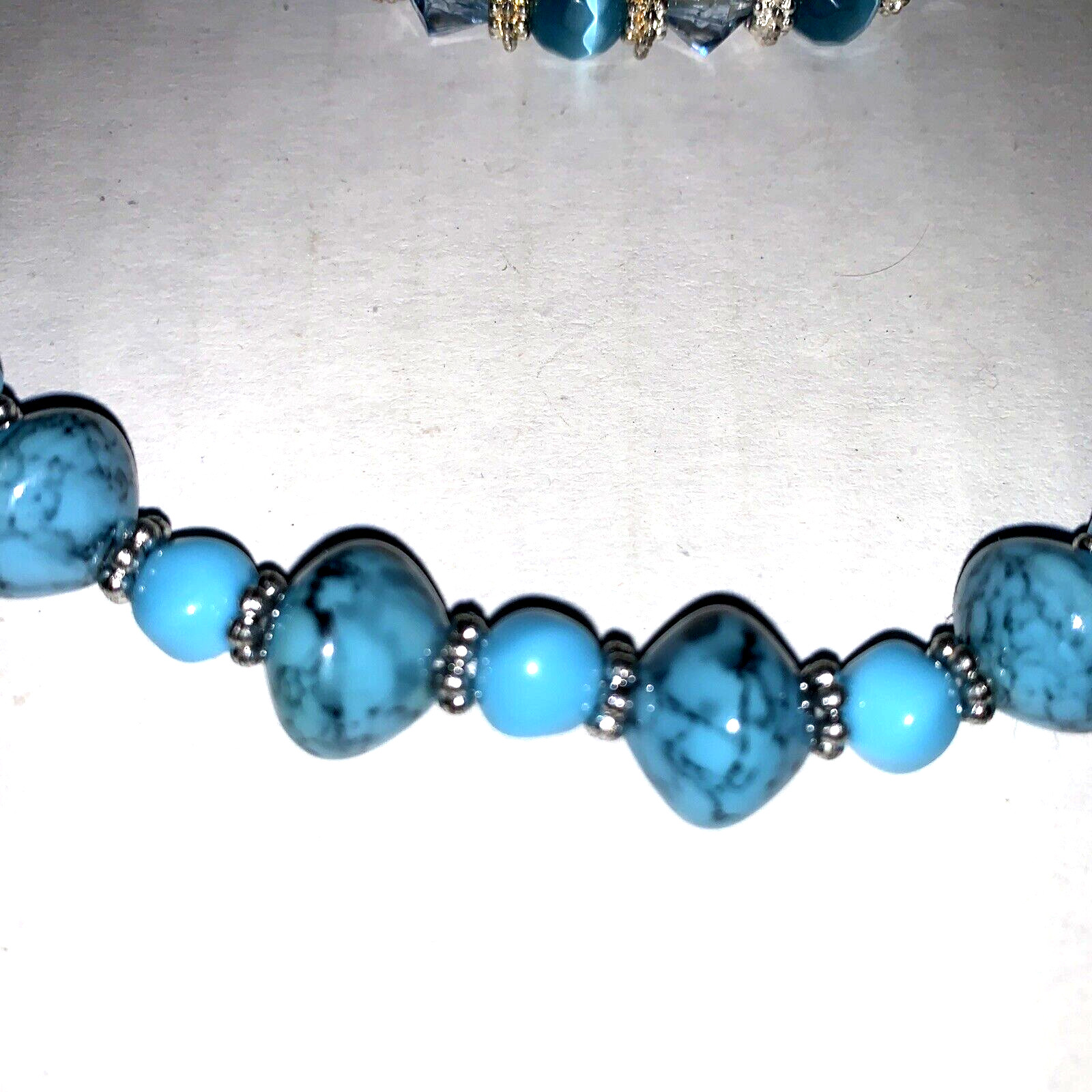 Turquoise Blue Beaded Necklace and Stretch Bracelet Set