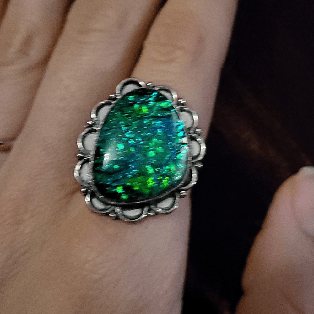 как выглядит Gorgeous Large Dichroic Glass Ring - Size 8.25 фото