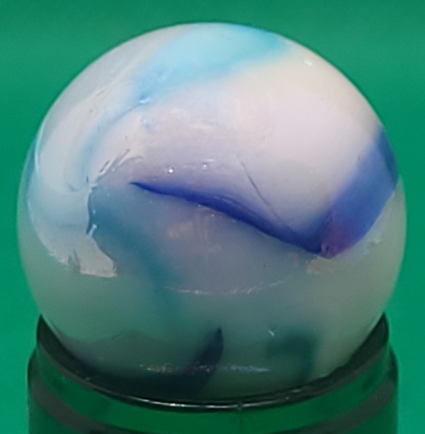 как выглядит Vintage Peltier Rainbo Blue Zebra Swirl Marble Shooter 26mm фото