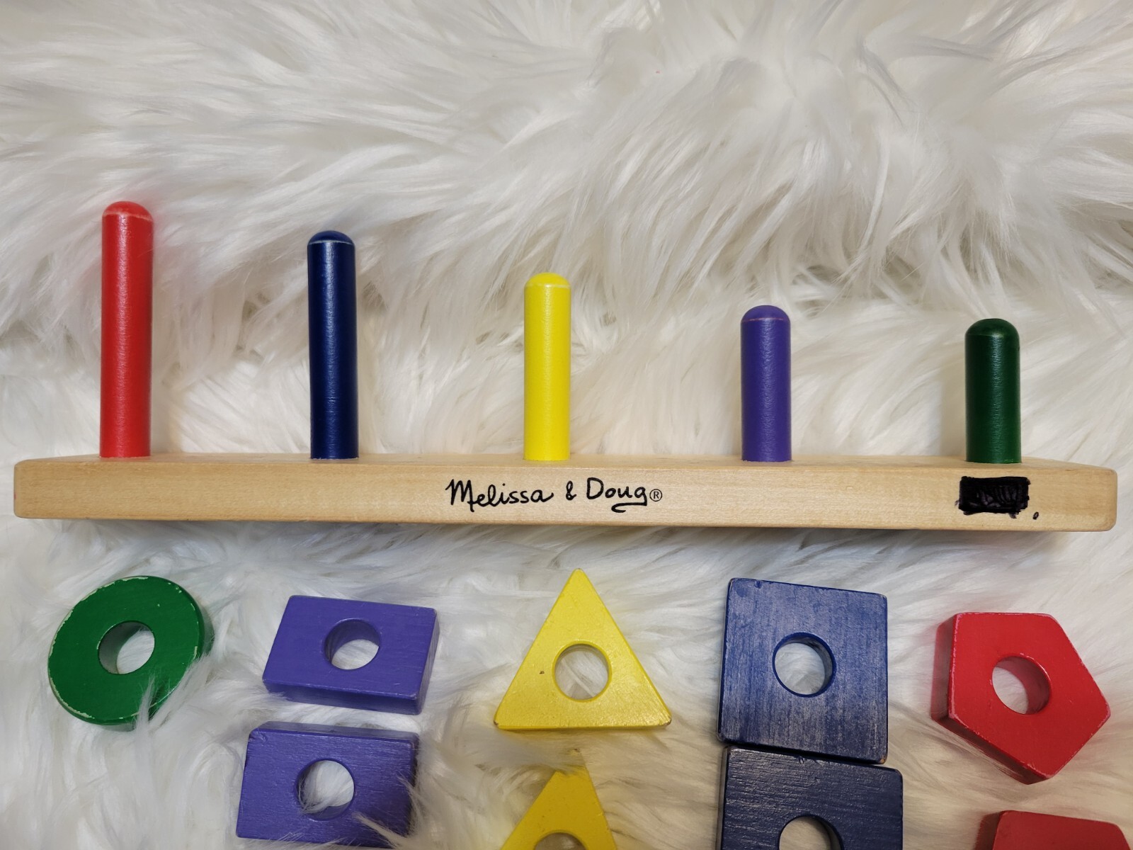 как выглядит Melissa Doug Stack Sort Board Toy Wood Shapes Colors Educational Preschool фото