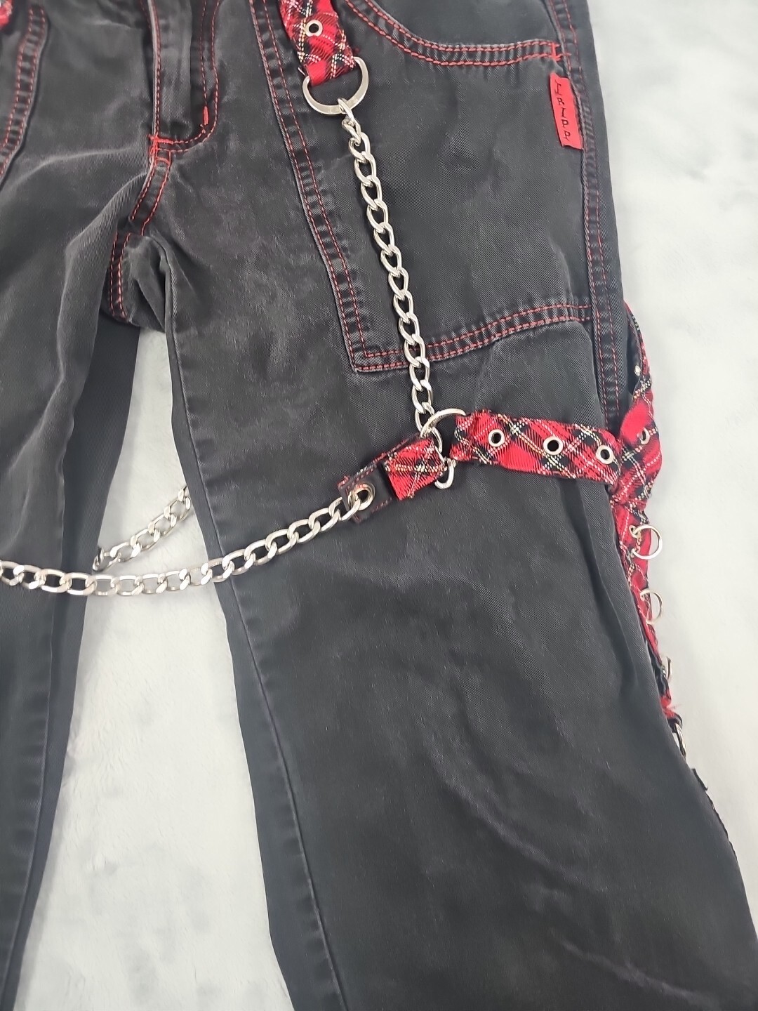 Vintage Tripp NYC Black and Red Plaid Zipper Chains Punk Emo Pants Size 3