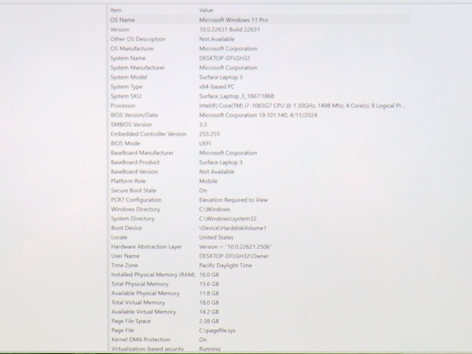 Microsoft Surface Laptop 3 1867 13.5 i7-1065G7 16GB 256GB NVMe W11P - Read Desc