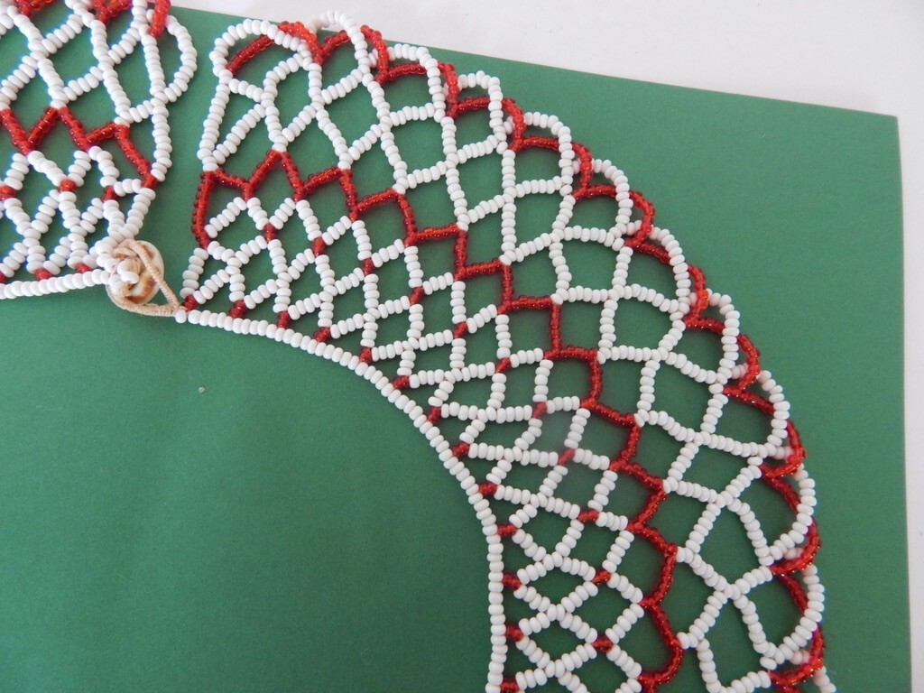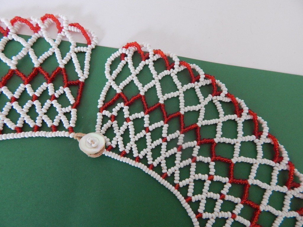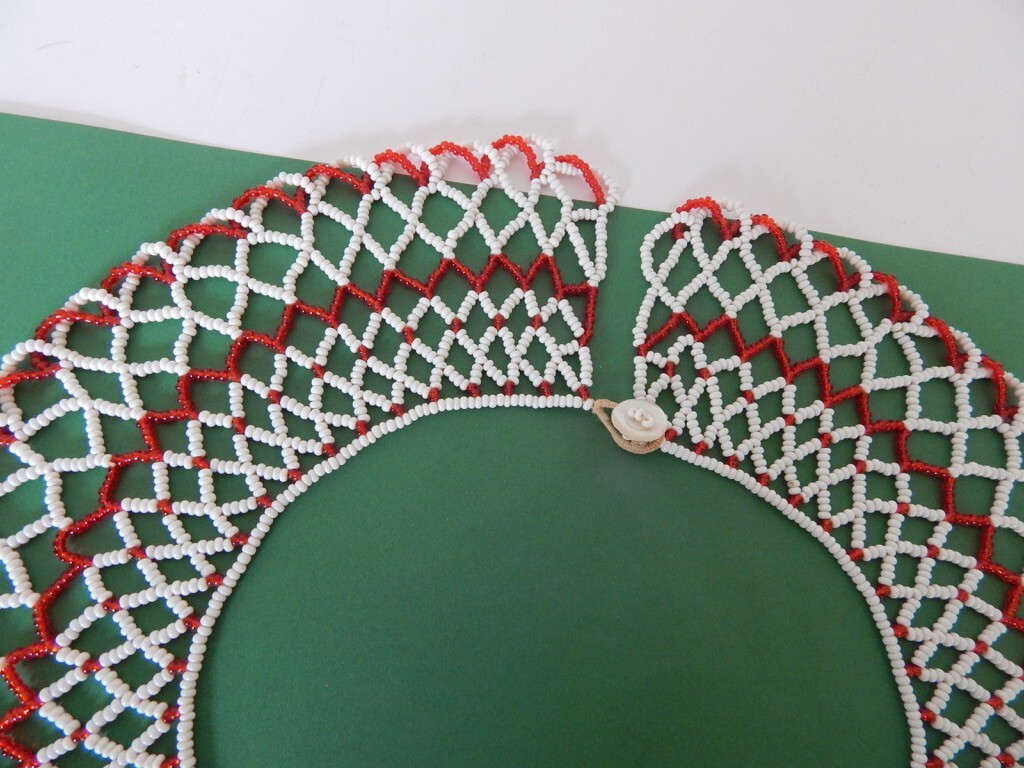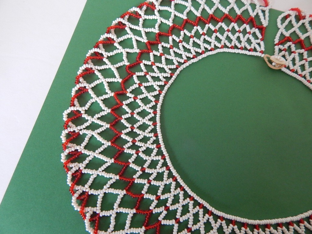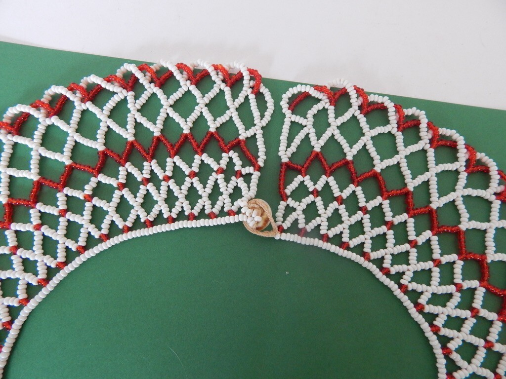 как выглядит Vintage Hand Beaded White and Red Collar--10" diameter фото