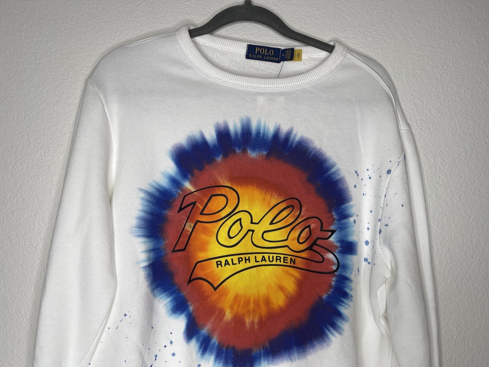 Polo Ralph Lauren Men's White Tie Dye Graphic Long Sleeve Sweatshirt Medium NWT