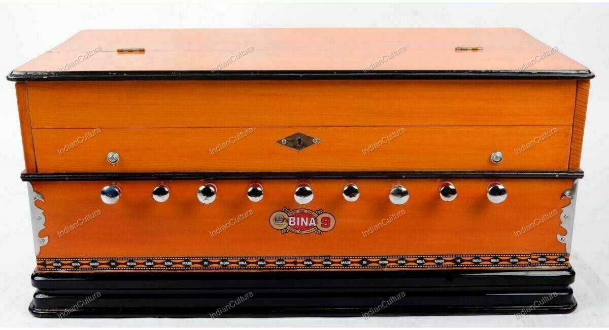 Original BINA Harmonium 9 Stopper Multifold Bellow 42 Keys Two Reeds 3.5 Octave