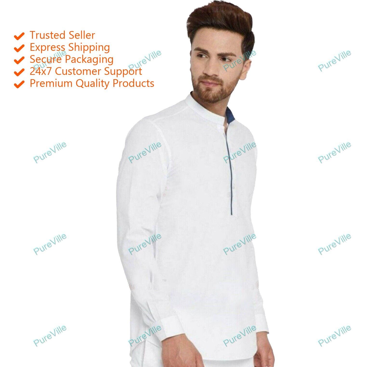 Mens Kurta Traditional Shirts Top Shirt Solid Mens Wear Cotton White Kurta