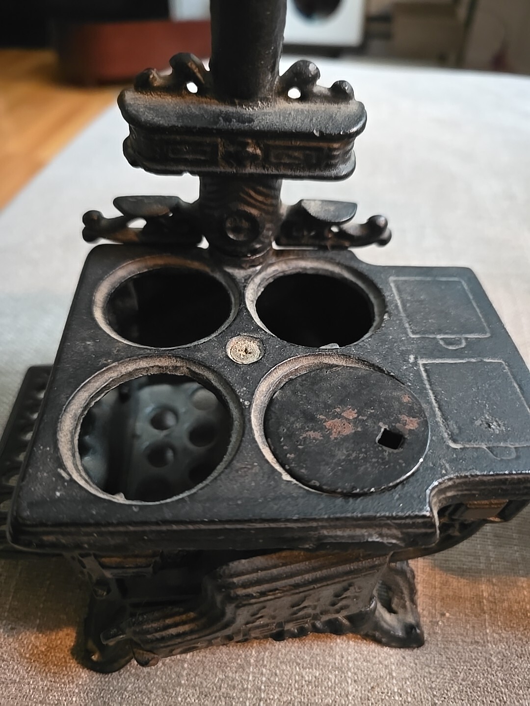 как выглядит Vintage Queen Miniature Stove Toy Cast Iron Lot W/ Potbelly Stove Incomplete фото