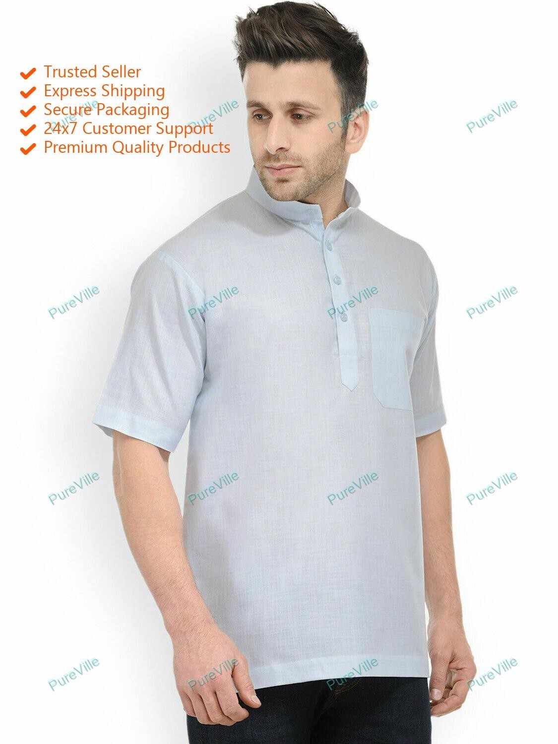 Mens Kurta only Traditional Mens Clothes Cotton Solid Kurta short Sleeve