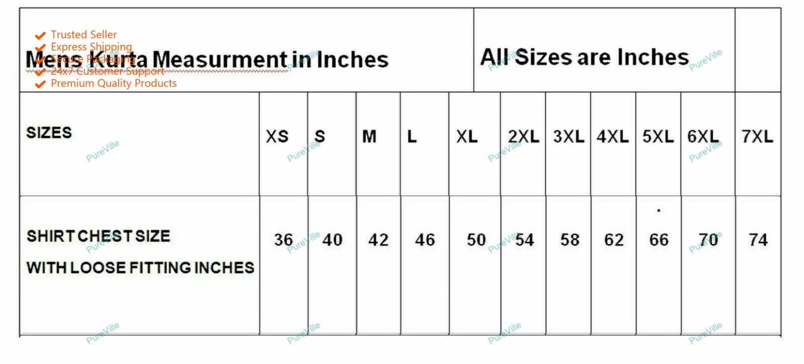 Pick Your Kurta Size: 7Xl