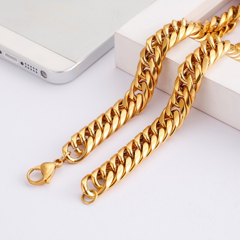 11mm Chunky Jewelry set Stainless Steel Double Link chain Necklace Bracelet Gold