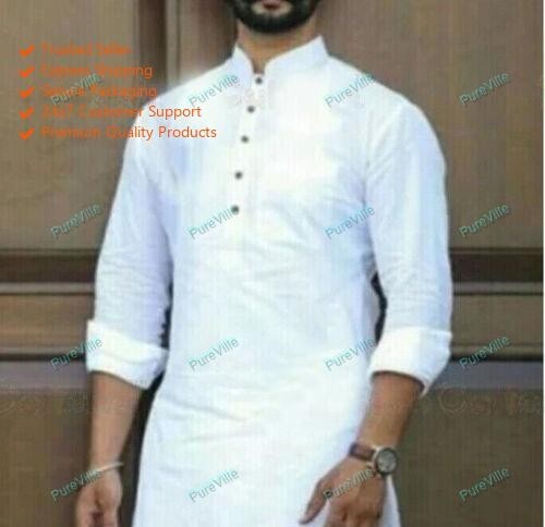 как выглядит Mens Kurta Shirt Cotton Indian PunjabiClothing Dress Men Long Kurta Without Paja фото