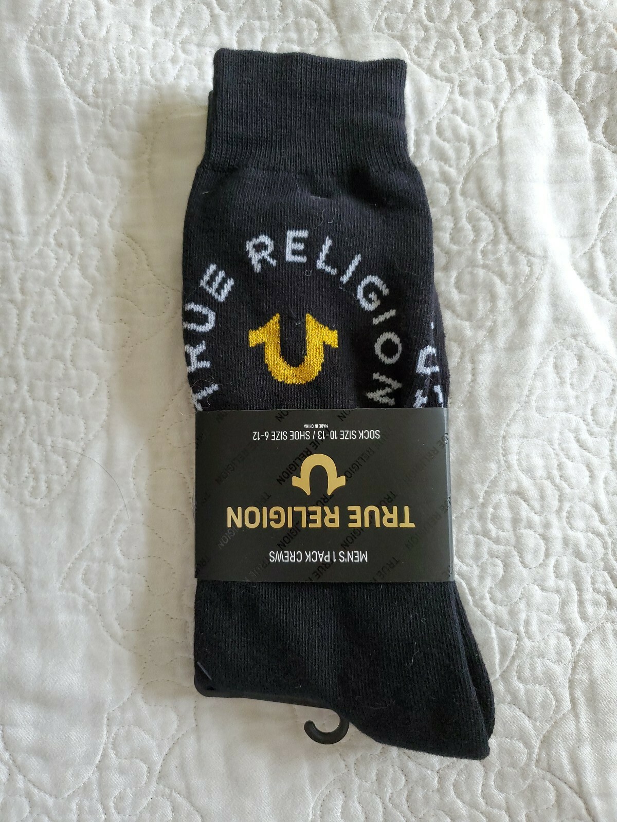 как выглядит NEW TRUE RELIGION HORSESHOE Black Crew Socks Mens Shoe Size 6-12 фото
