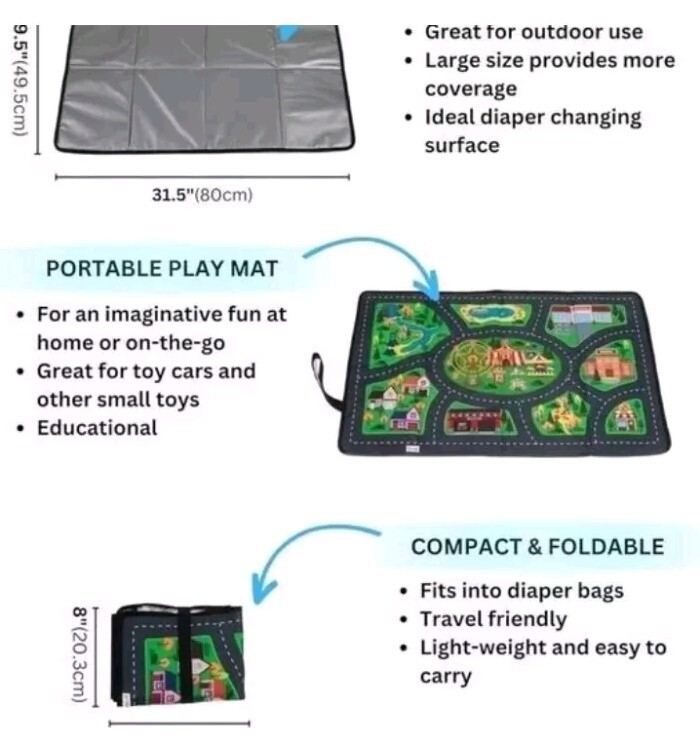 Portable 2-in-1 Diaper Changing Pad Play Mat with Wet Bag