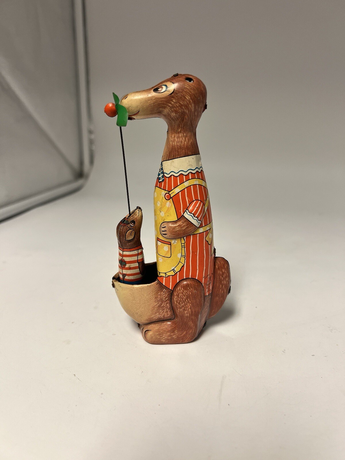как выглядит Vintage Tin MAMA Kangaroo With Playful Baby Wind Up Toy Works Great. фото