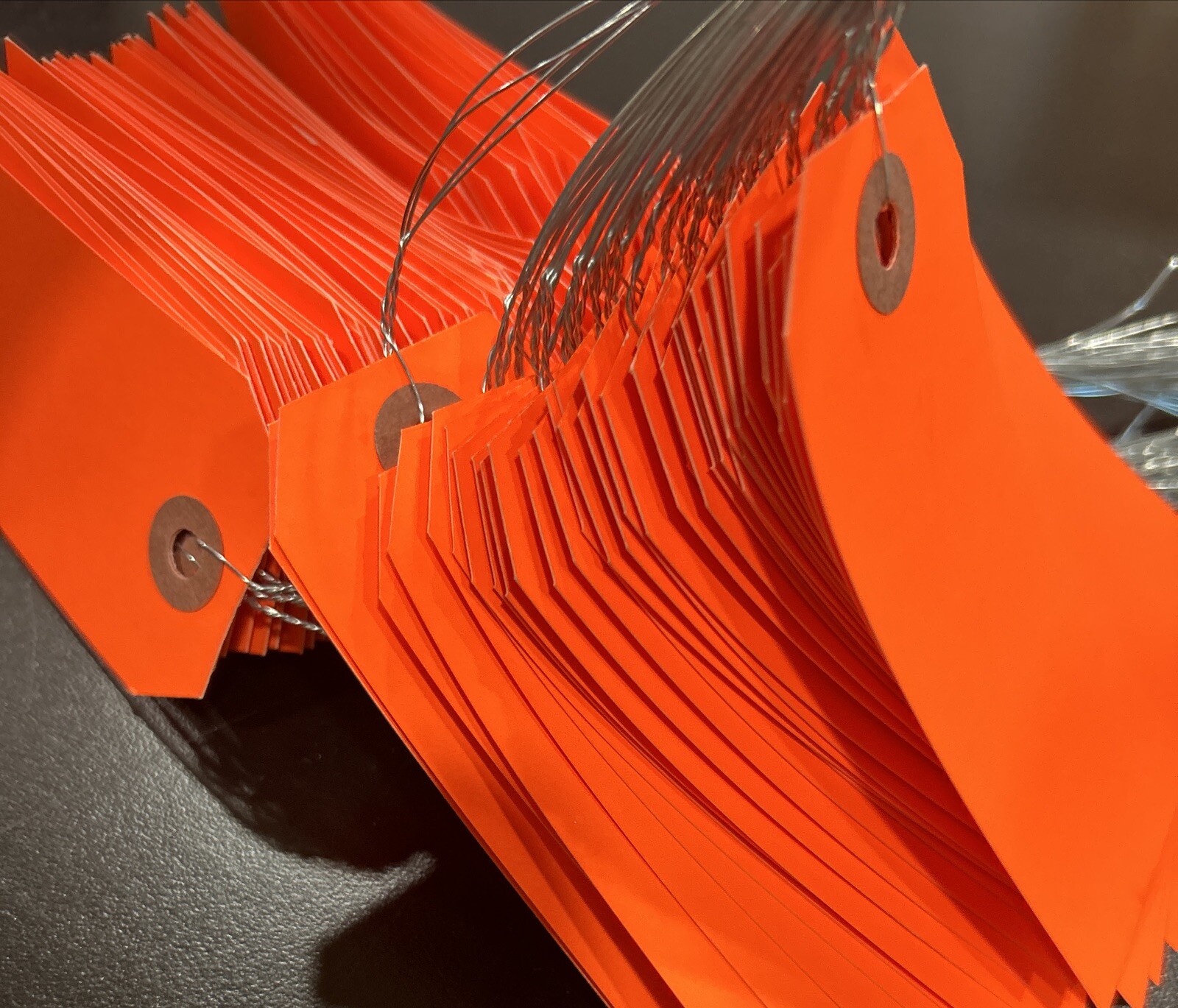 как выглядит Uline 3 3/4 x 1 7/8" Fluorescent Red Tags - Pre-Wired, 100 Count, A-5980RPW New фото