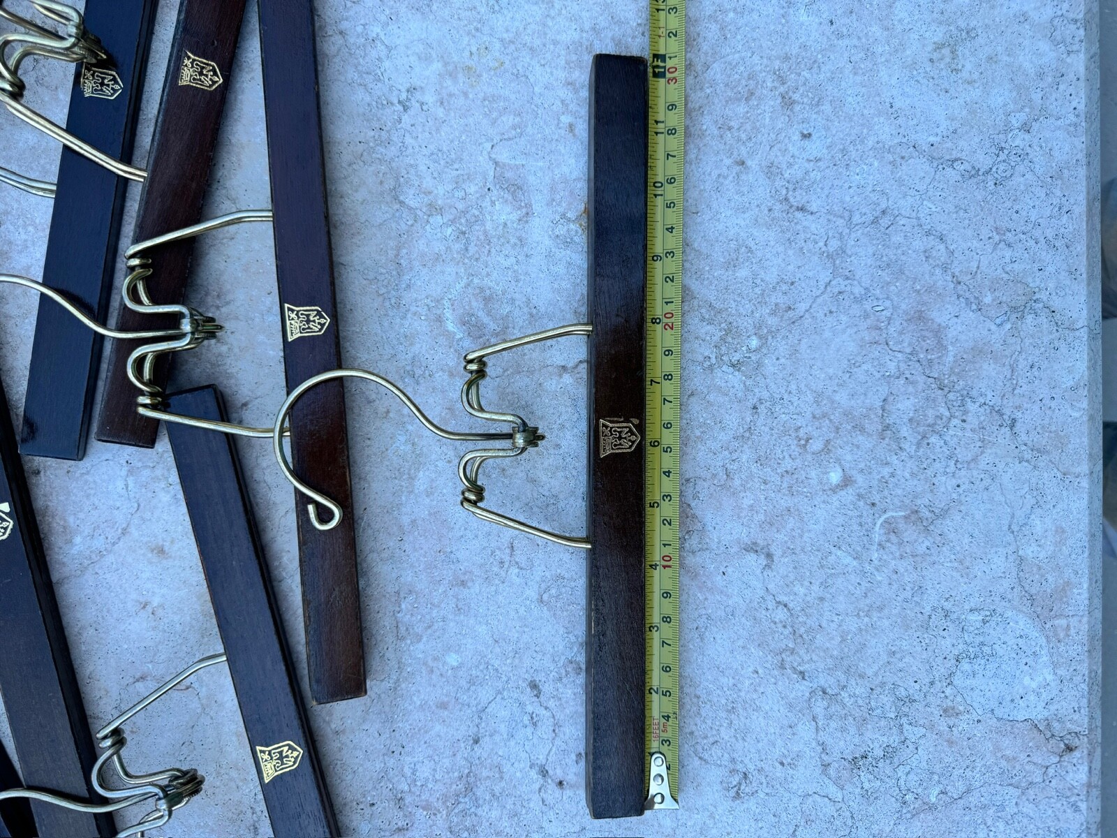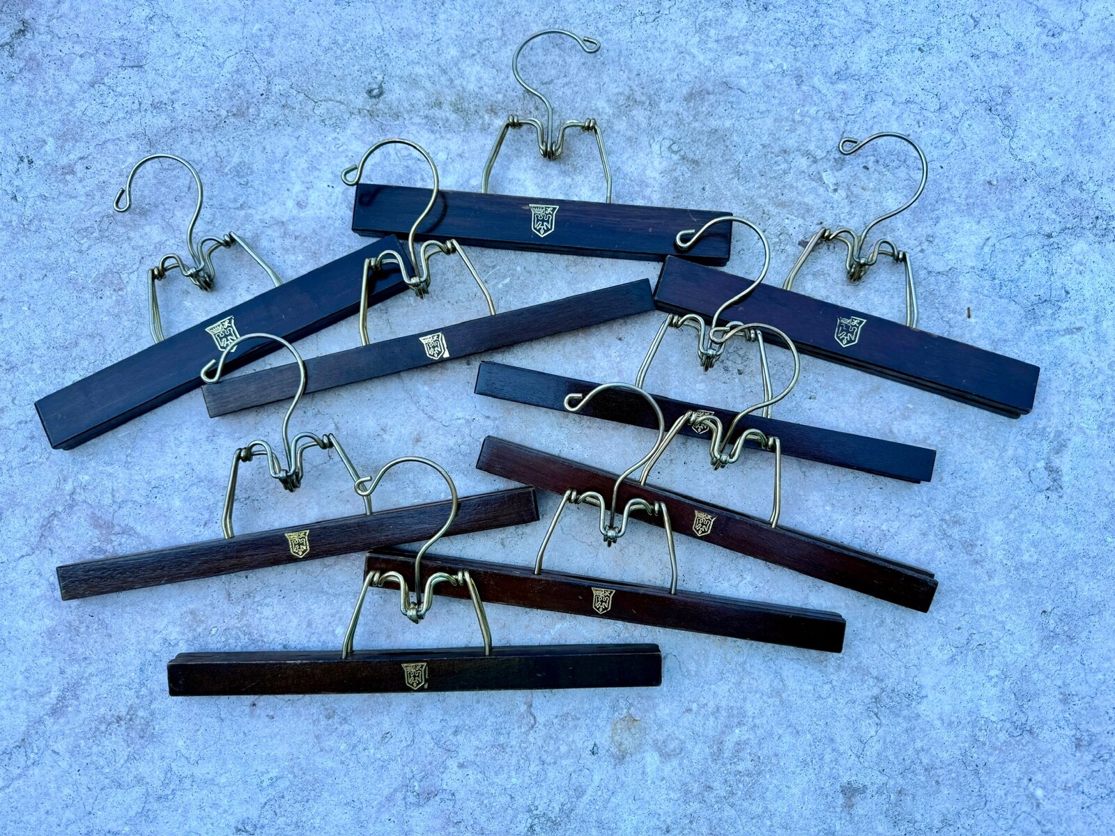vintage crest logo wooden slacks/pants hangers 9pc lot