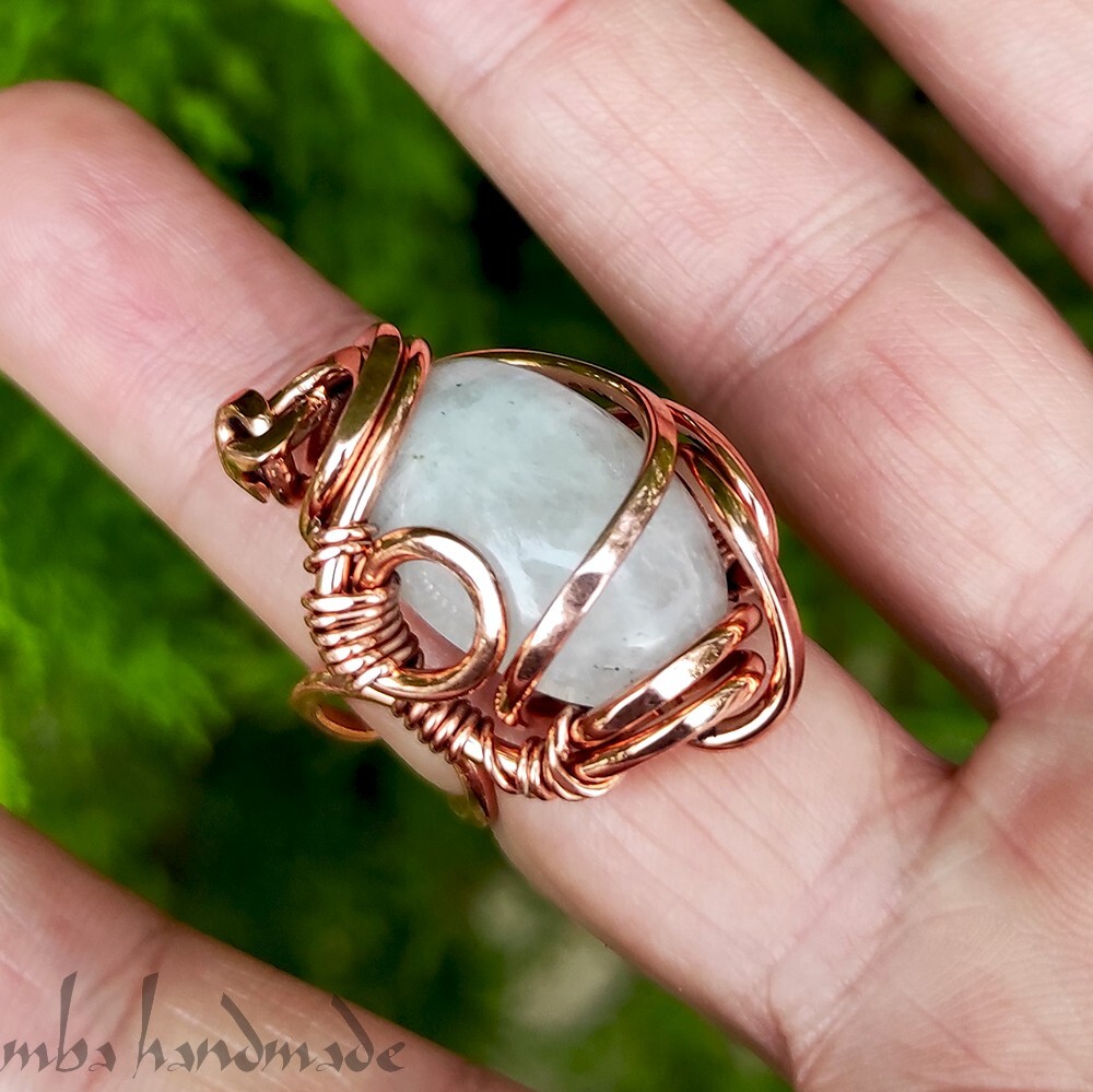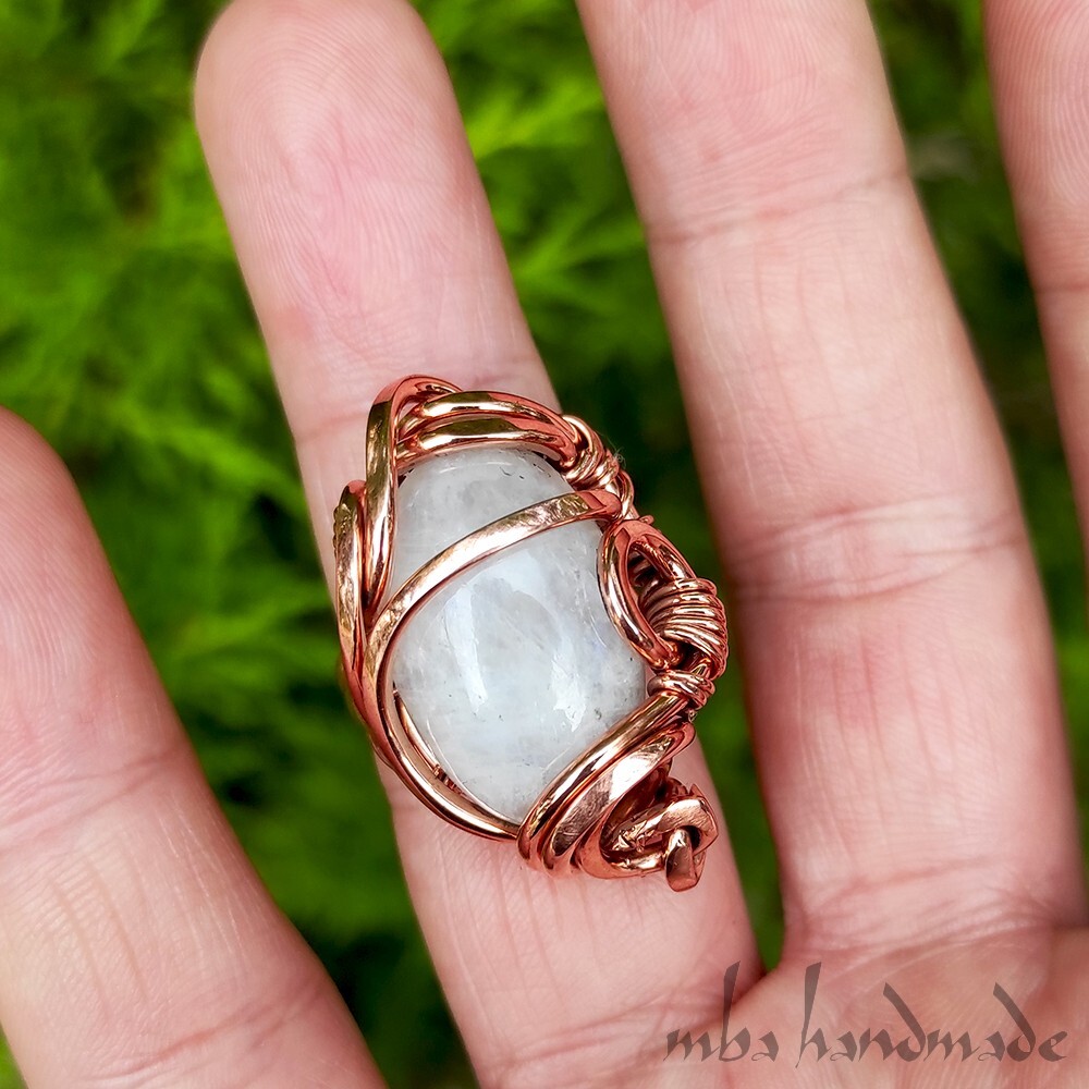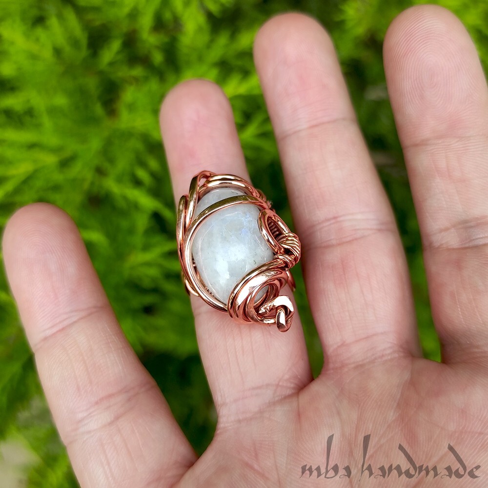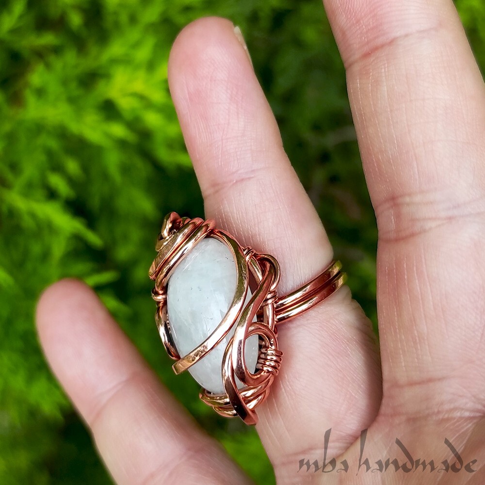 как выглядит Moonstone Crystal Size 6-7-8-9 US Adjustable Ring Pure Copper Unique Jewelry фото
