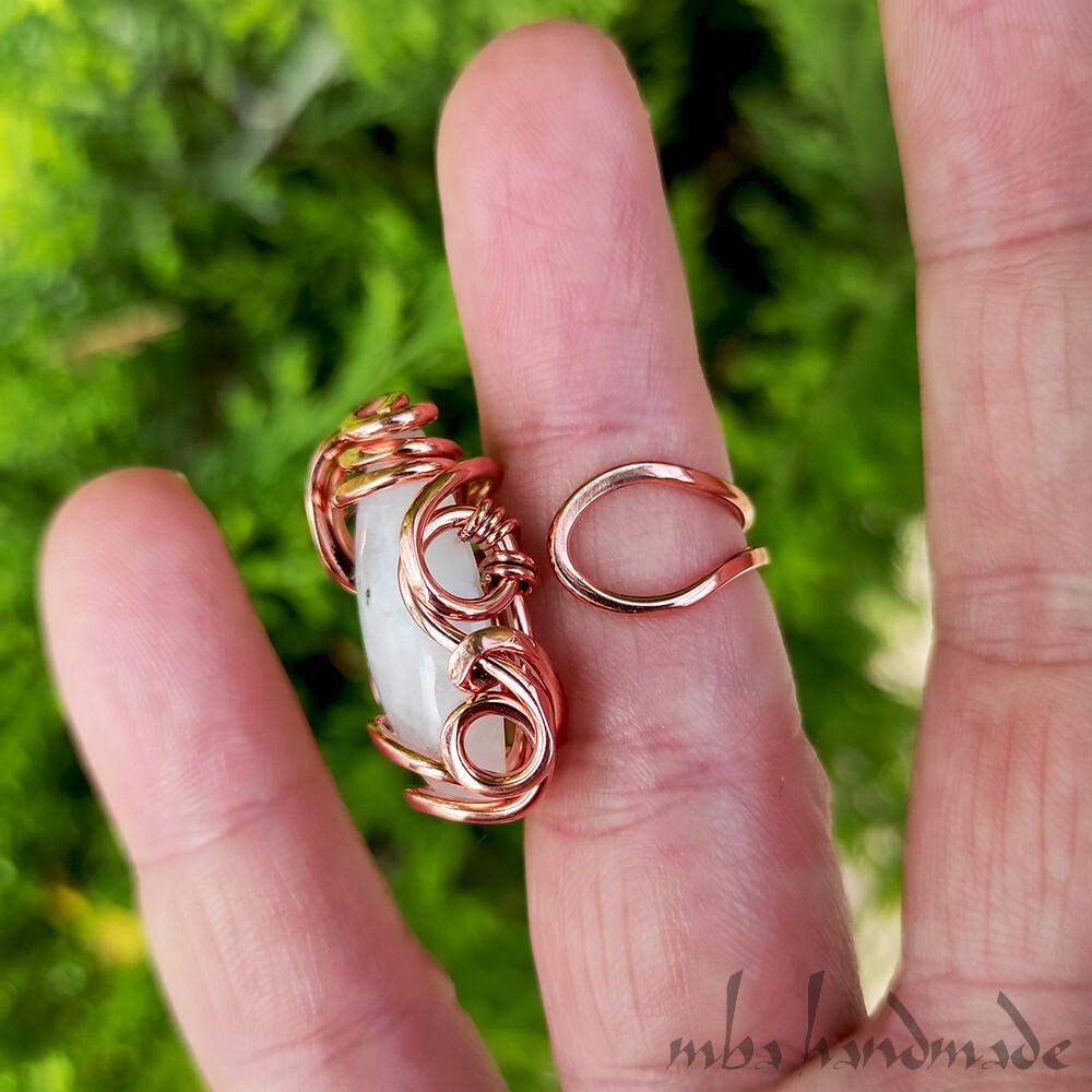 как выглядит Moonstone Crystal Size 6-7-8 US Adjustable Ring Pure Copper Unique Jewelry фото
