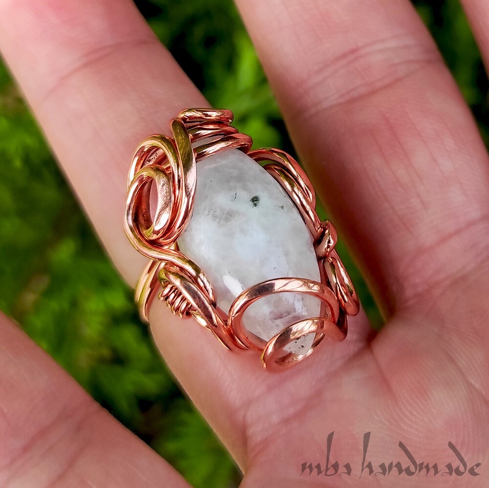 Moonstone Crystal Size 6-7-8 US Adjustable Ring Pure Copper Unique Jewelry