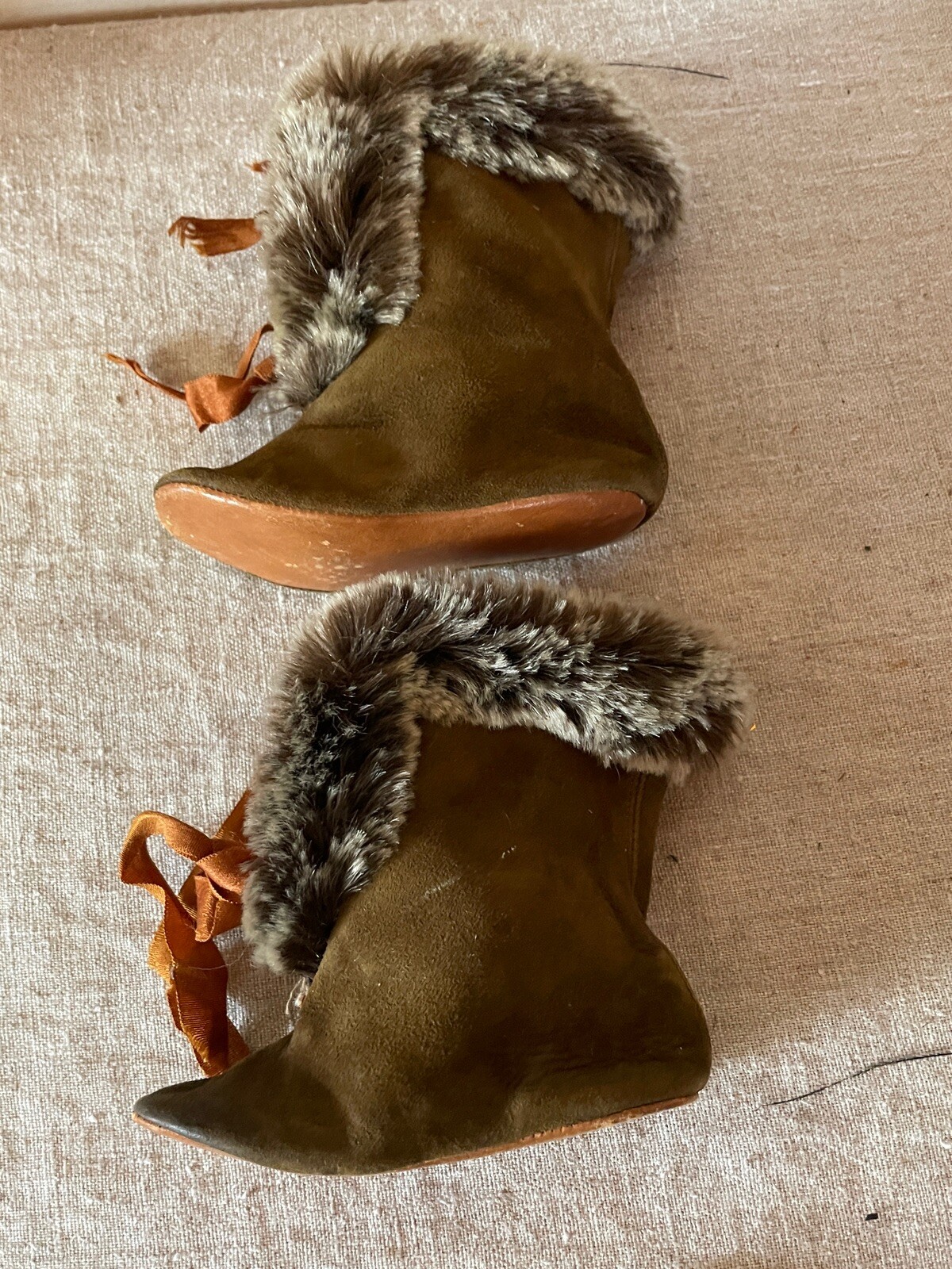 Victorian / Edwardian Suede Leather Faux Fur Winter Boots Childs Doll Shoes
