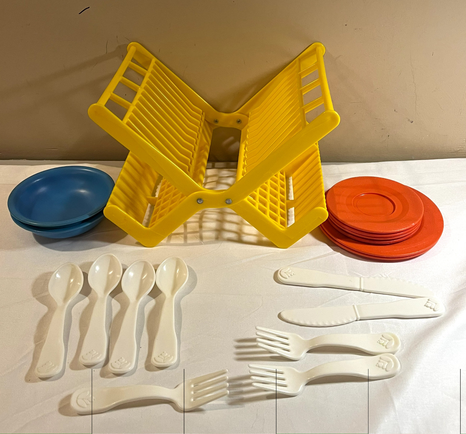 Fisher Price Fun with Food - Pretend Play Dishes - Drying Rack, Plates, More