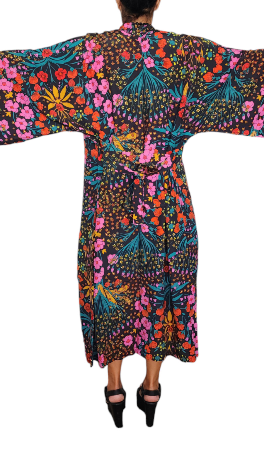 как выглядит Womens Vibrant Garden Boho Kimono Bold Floral Wrap for Effortless Style фото