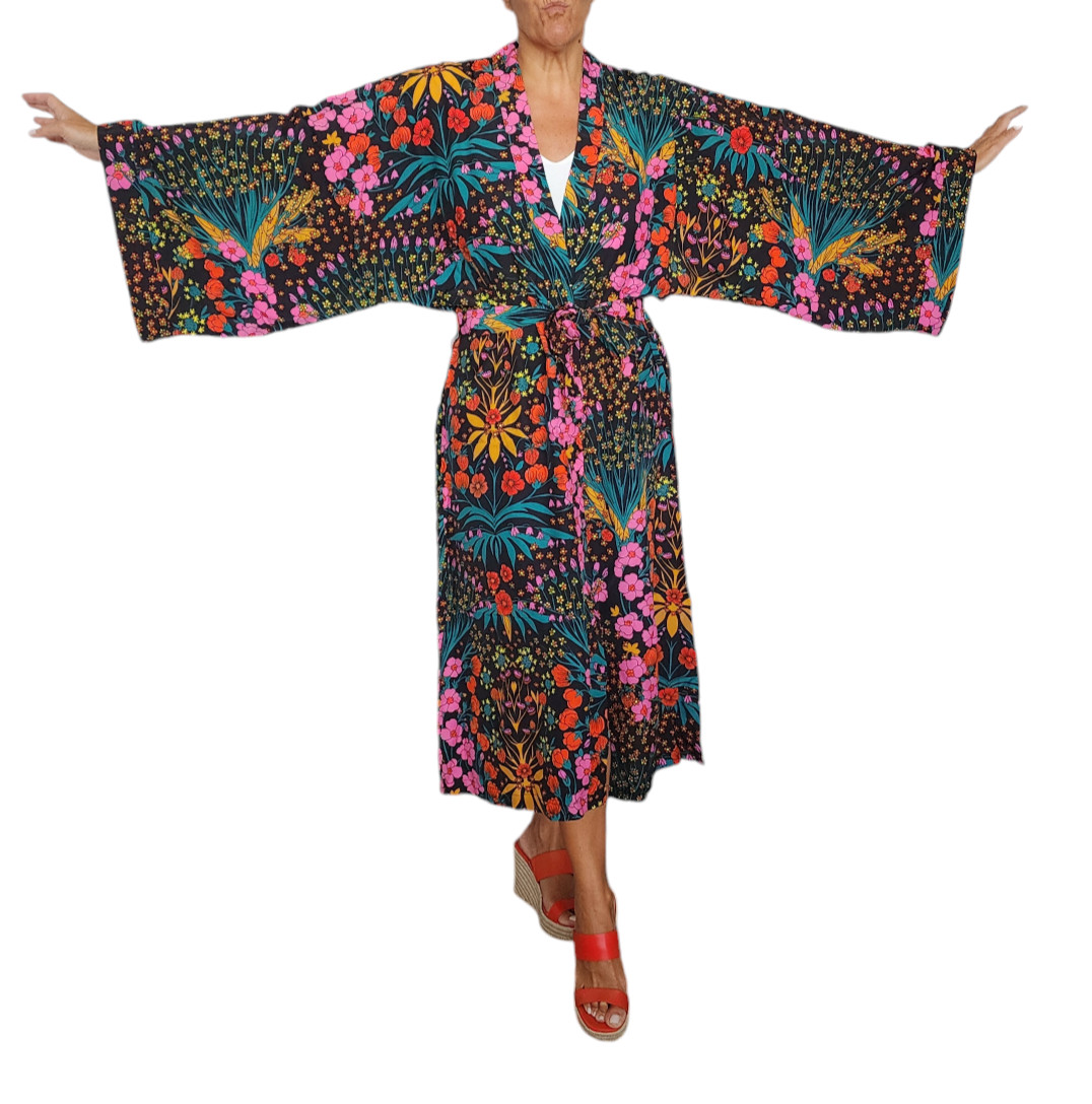 Women's Vibrant Garden Boho Kimono Bold Floral Wrap for Effortless Style
