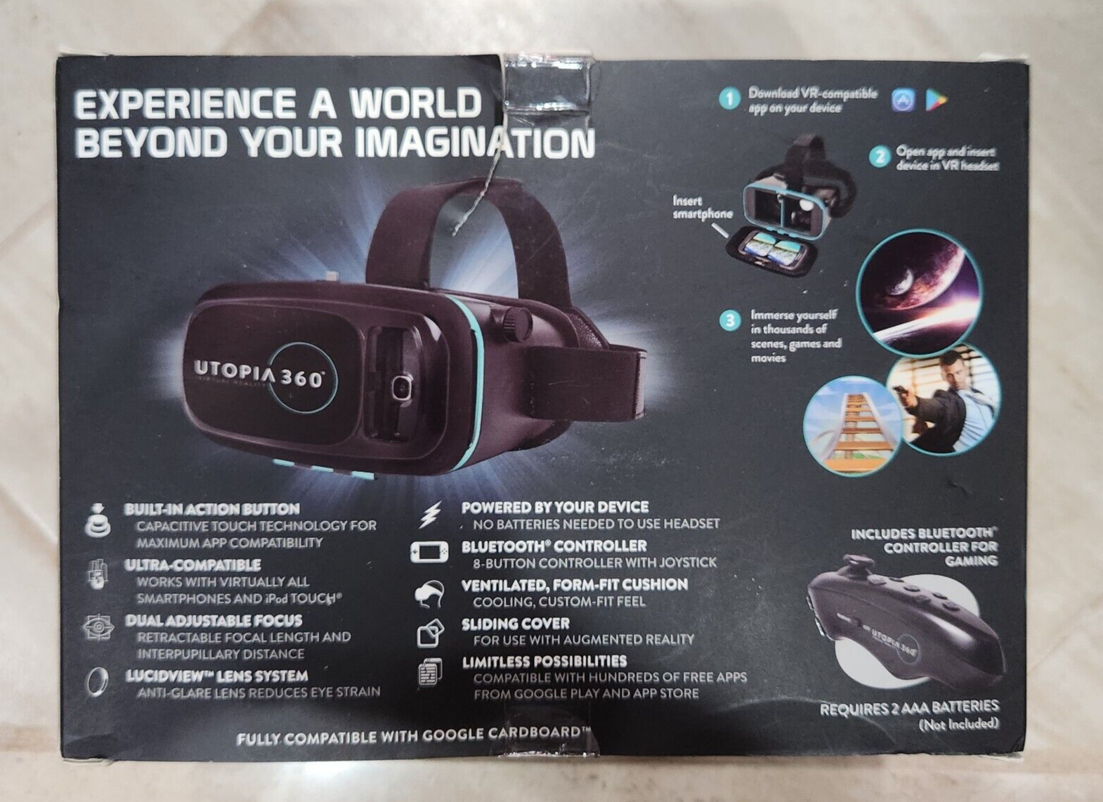 New UTOPIA 360 VIRTUAL REALITY 3D HEADSET WITH BLUETOOTH CONTROLLER ReTrak ETVRC