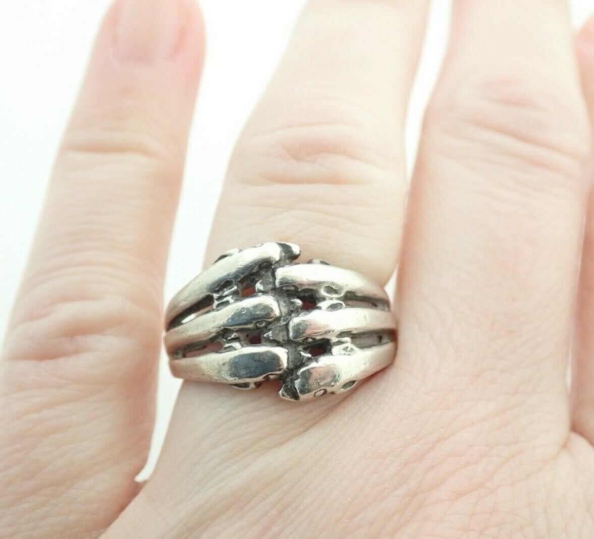 как выглядит Vintage Dolphin Cluster Sterling Silver Band Ring Sz 7.75 фото