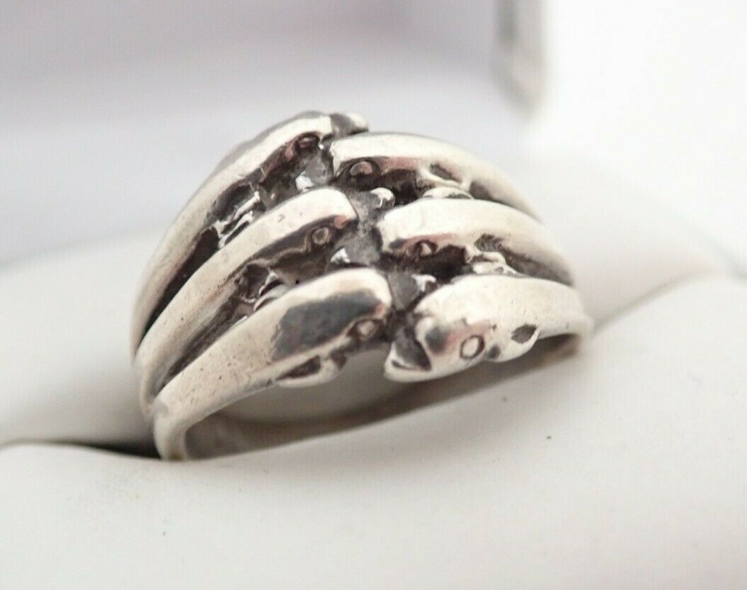 Vintage Dolphin Cluster Sterling Silver Band Ring Sz 7.75