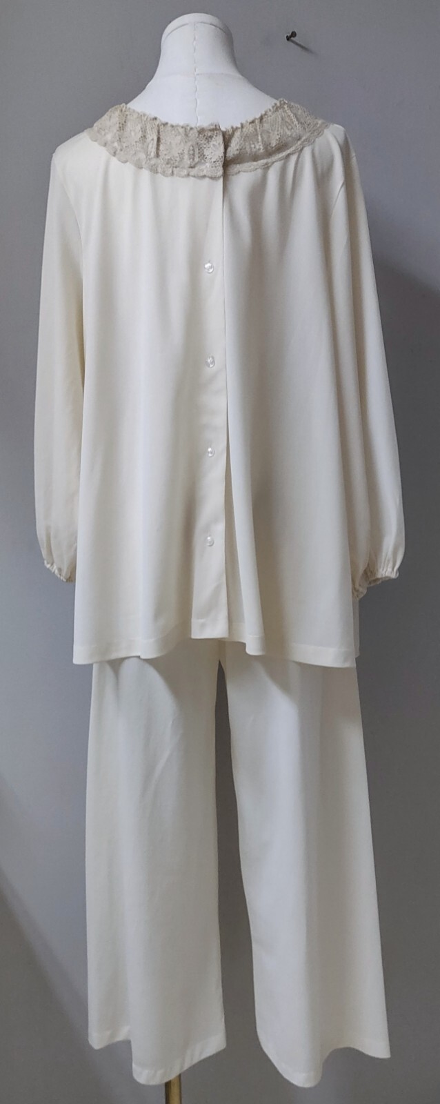 Van Raalte Vintage 60's Nylon Lace Cream Ecru Wide Leg Lounging Pajamas 40