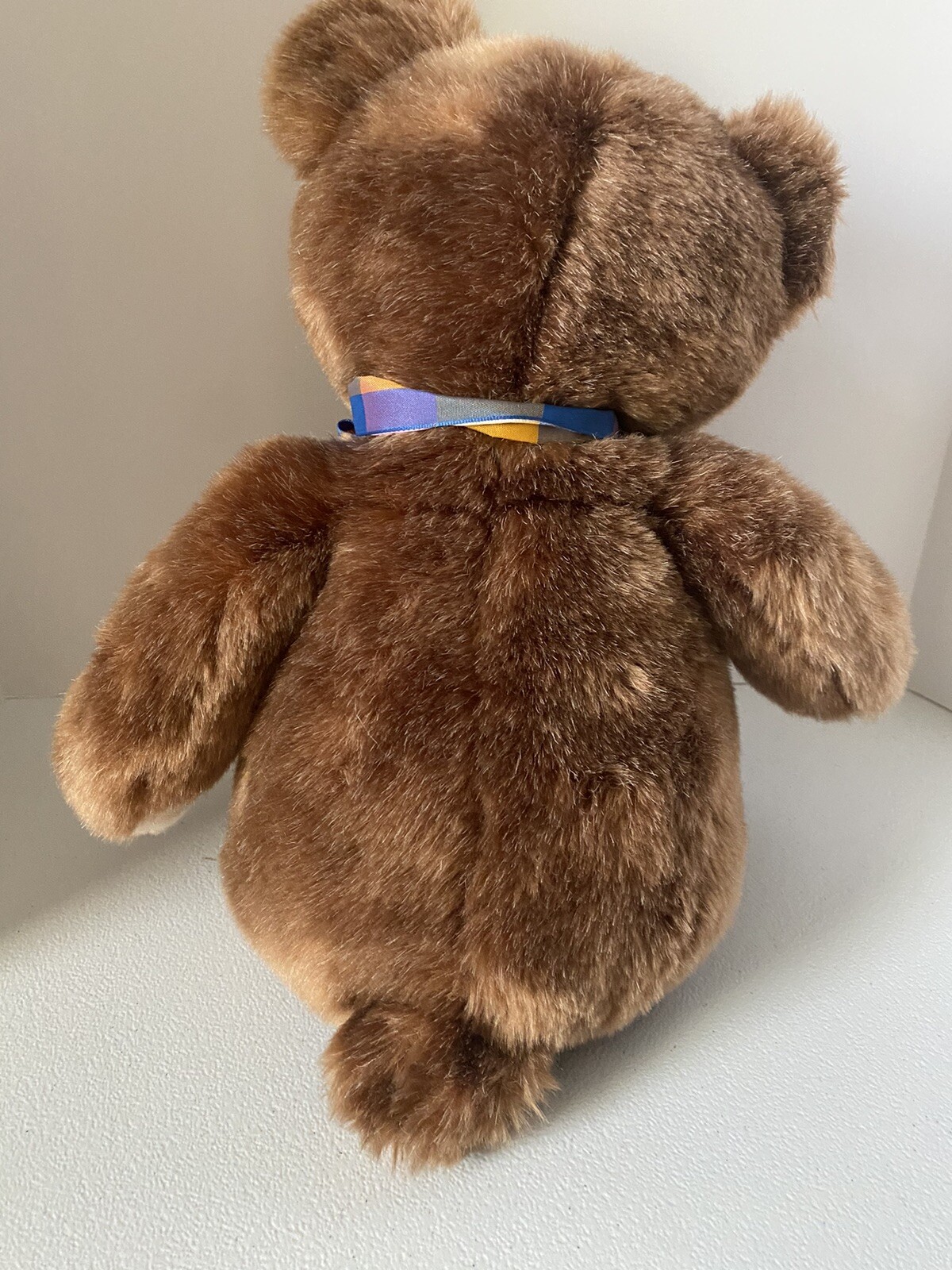 как выглядит Vintage GUND Dark Brown Shaggy Fuzzy Teddy Bear w/ Plaid Bow Plush, Adorable фото