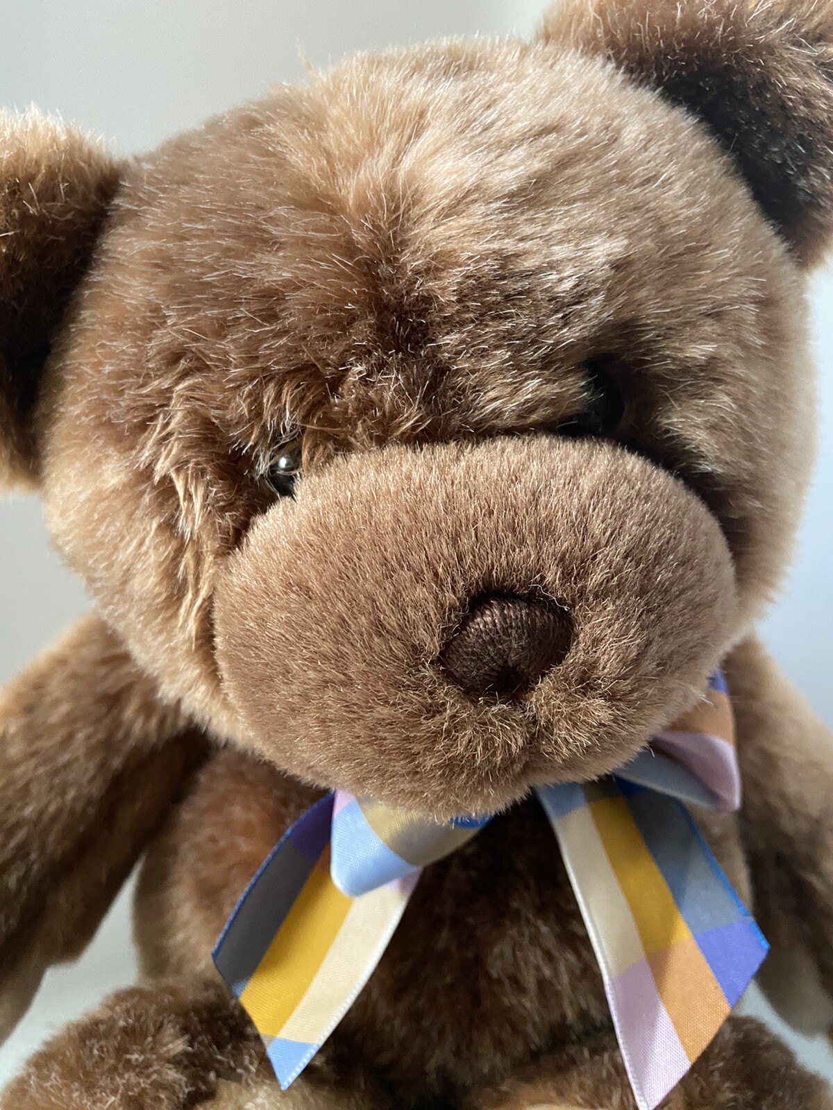 Vintage GUND Dark Brown Shaggy Fuzzy Teddy Bear w/ Plaid Bow Plush, Adorable
