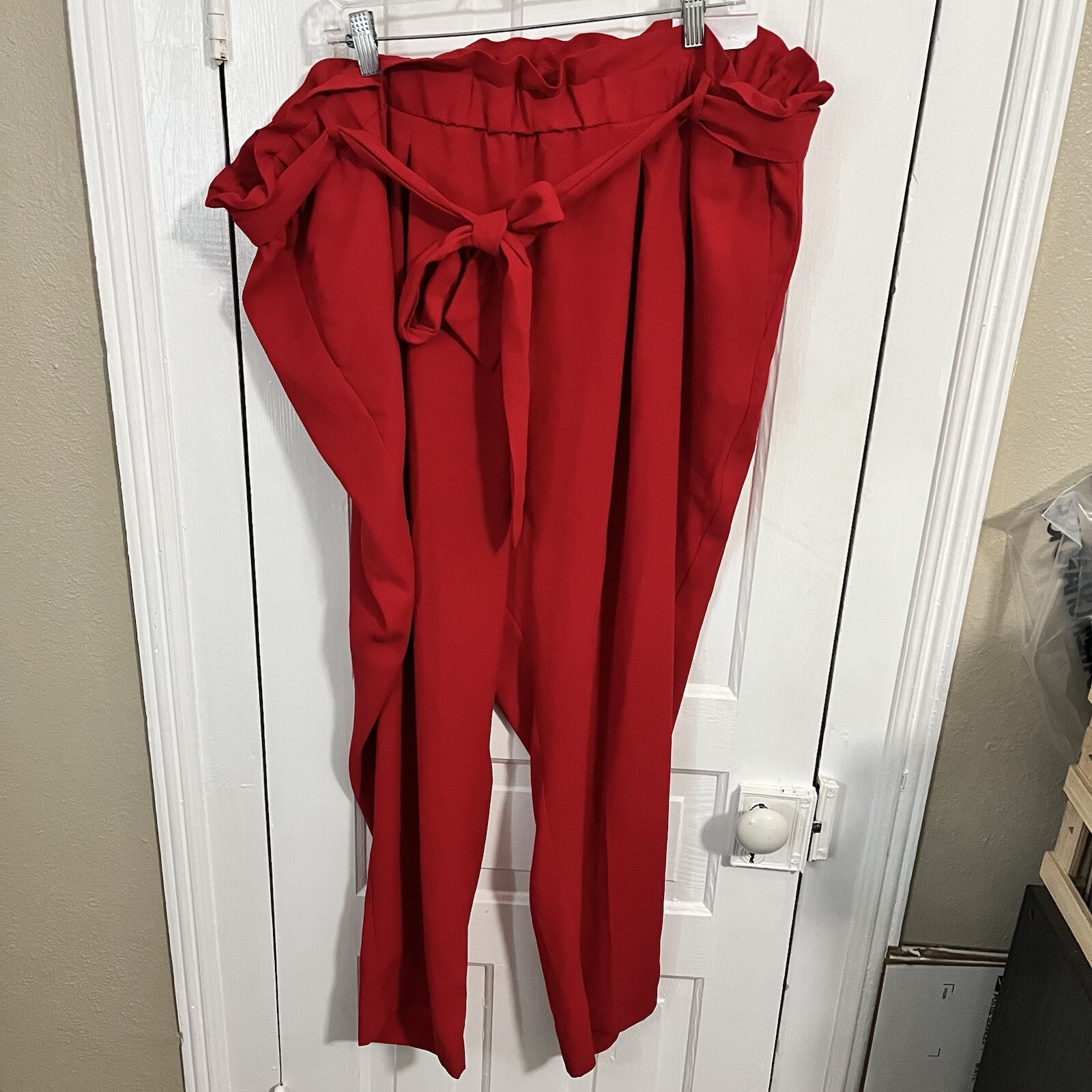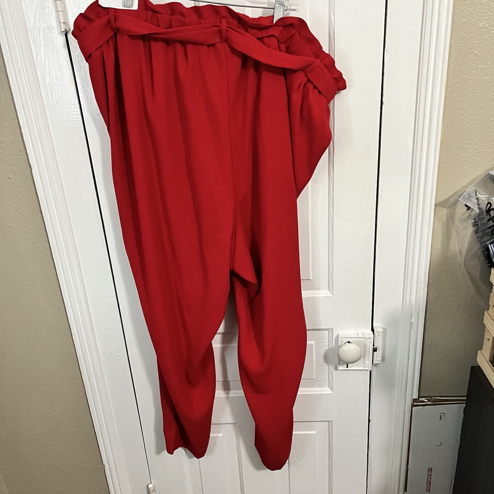 как выглядит Lane Bryant Red Belted Pull On Ankle Pants Size 26 G фото