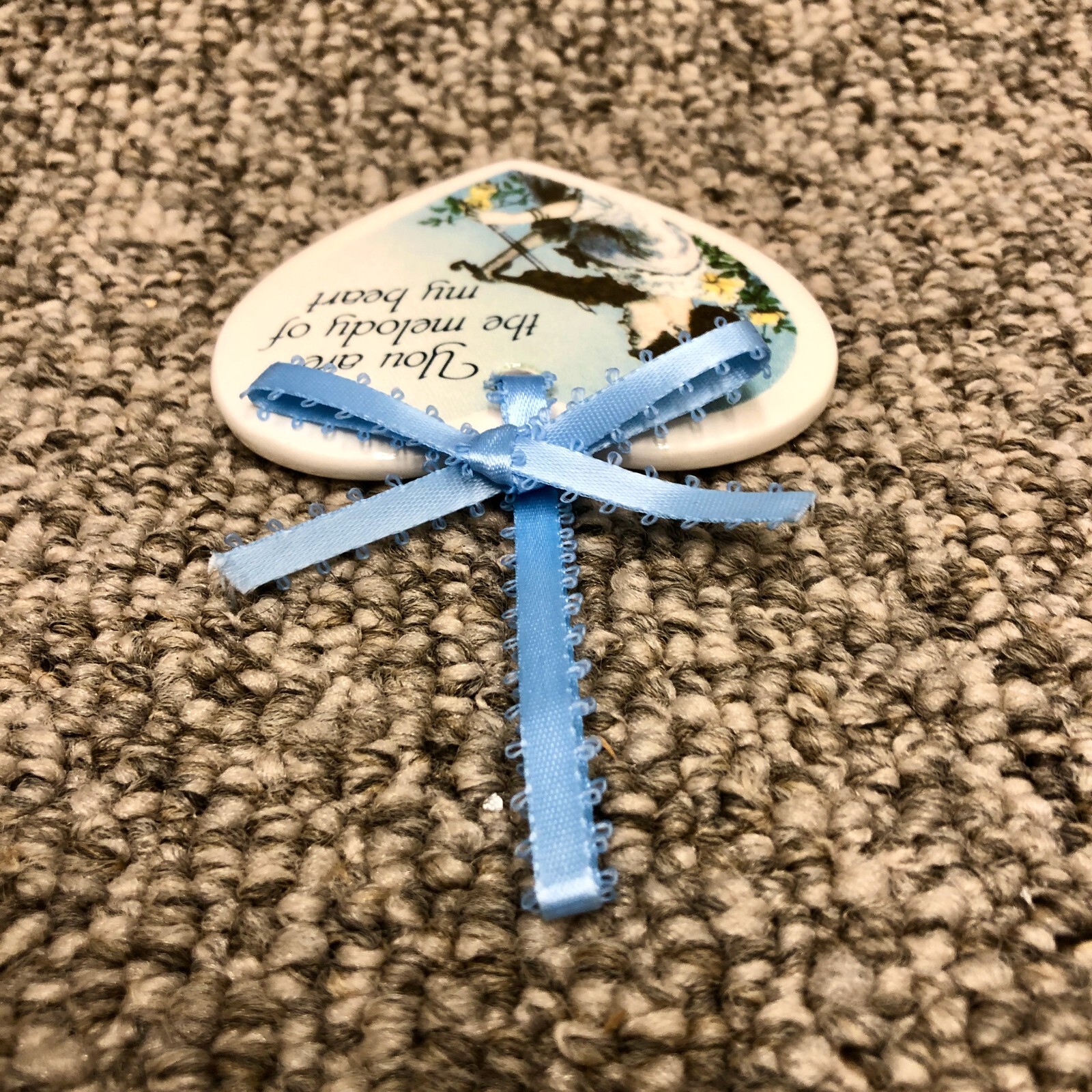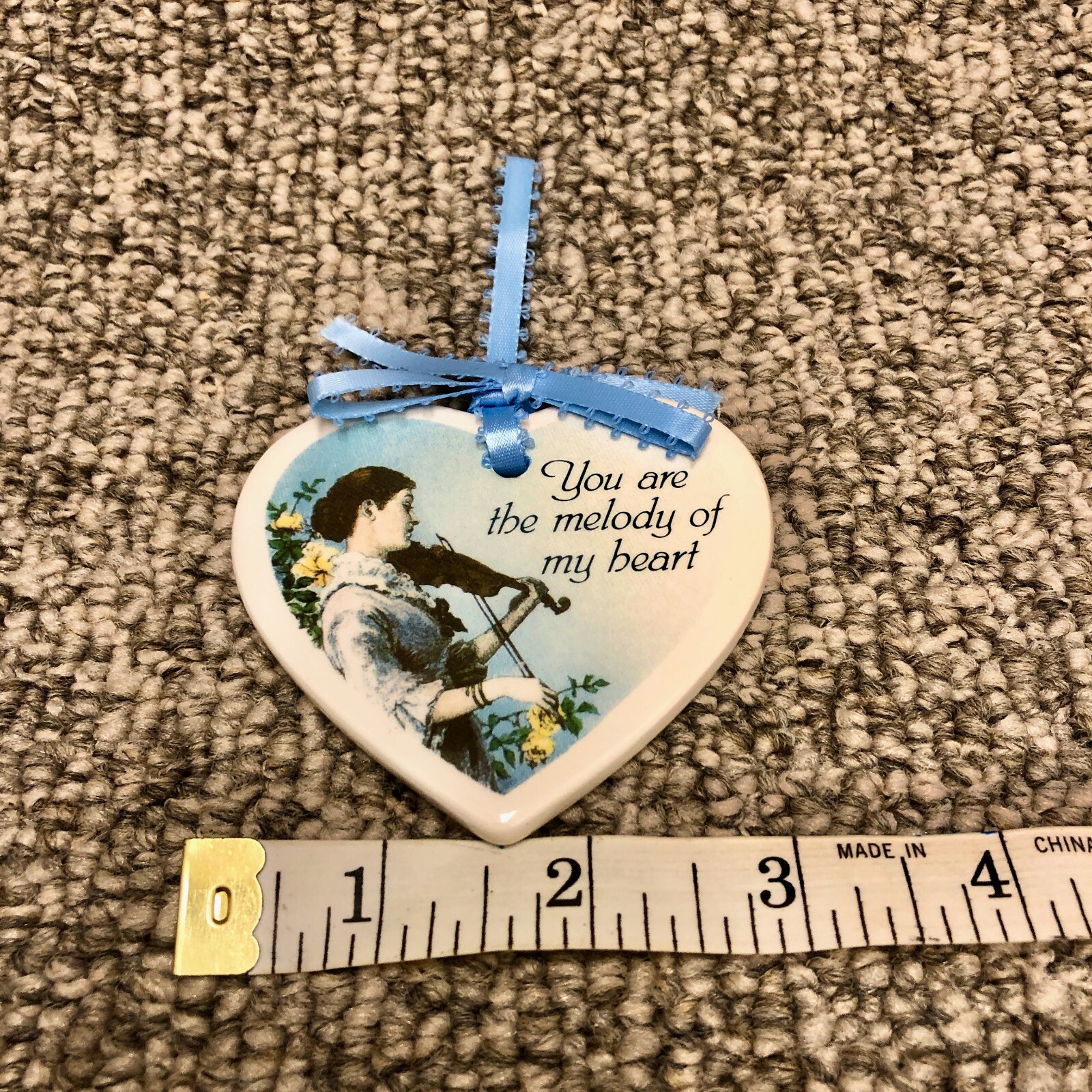 как выглядит Heart Shaped Ceramic Xmas Violinist Musician Melody Ornament Blue Ribbon фото
