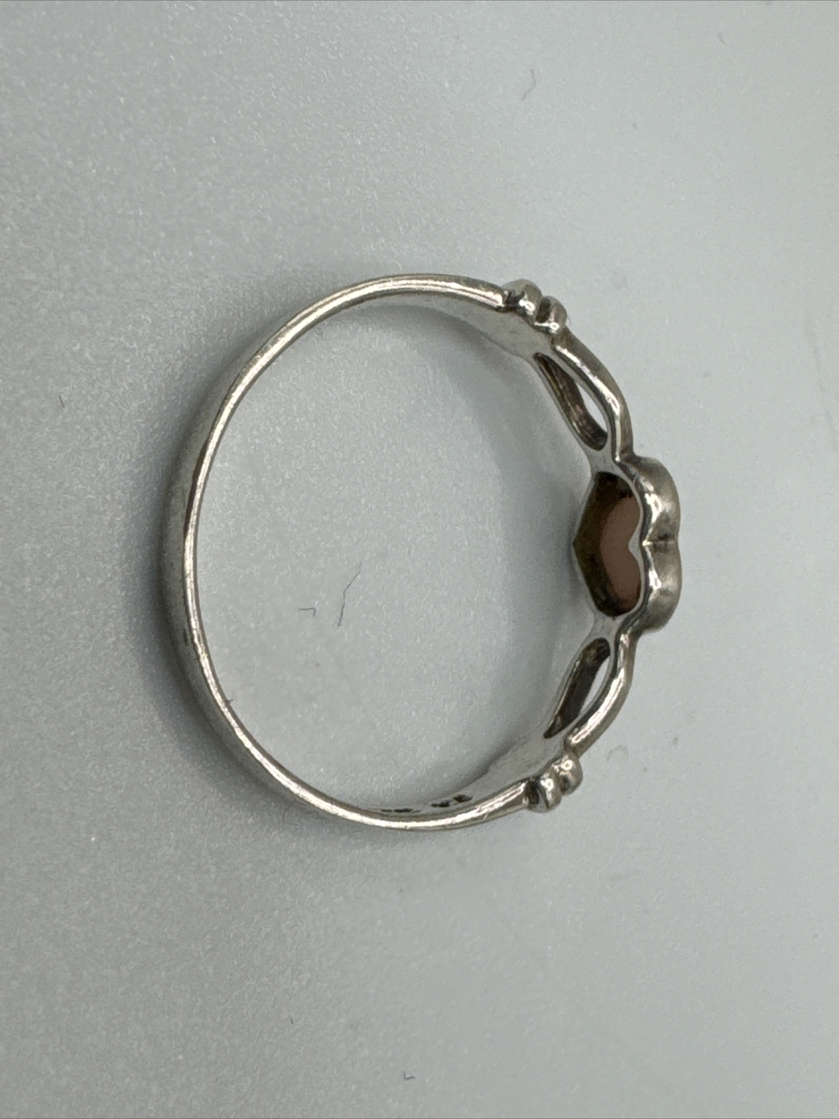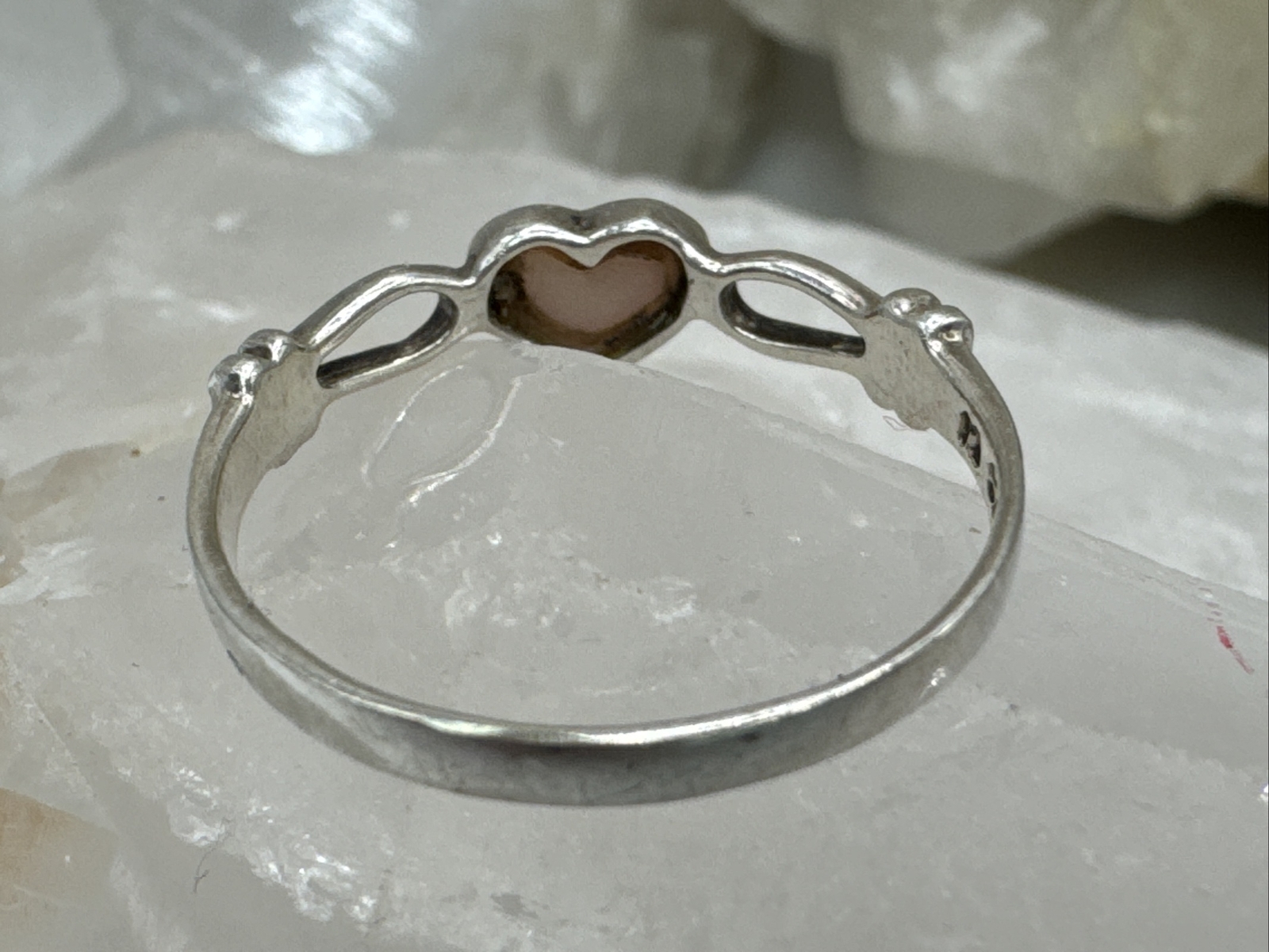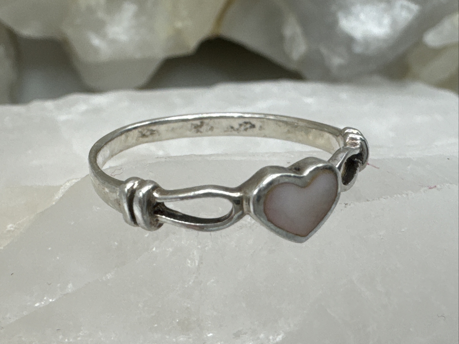 как выглядит 925 Sterling Silver Mother Of Pearl Heart Ring Sz 6 .96g AT624-5 фото