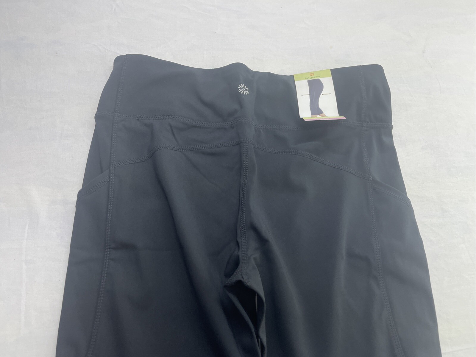 как выглядит Tangerine Womens Black Active Capri Leggings w/Mesh Panel And Pockets Small New фото