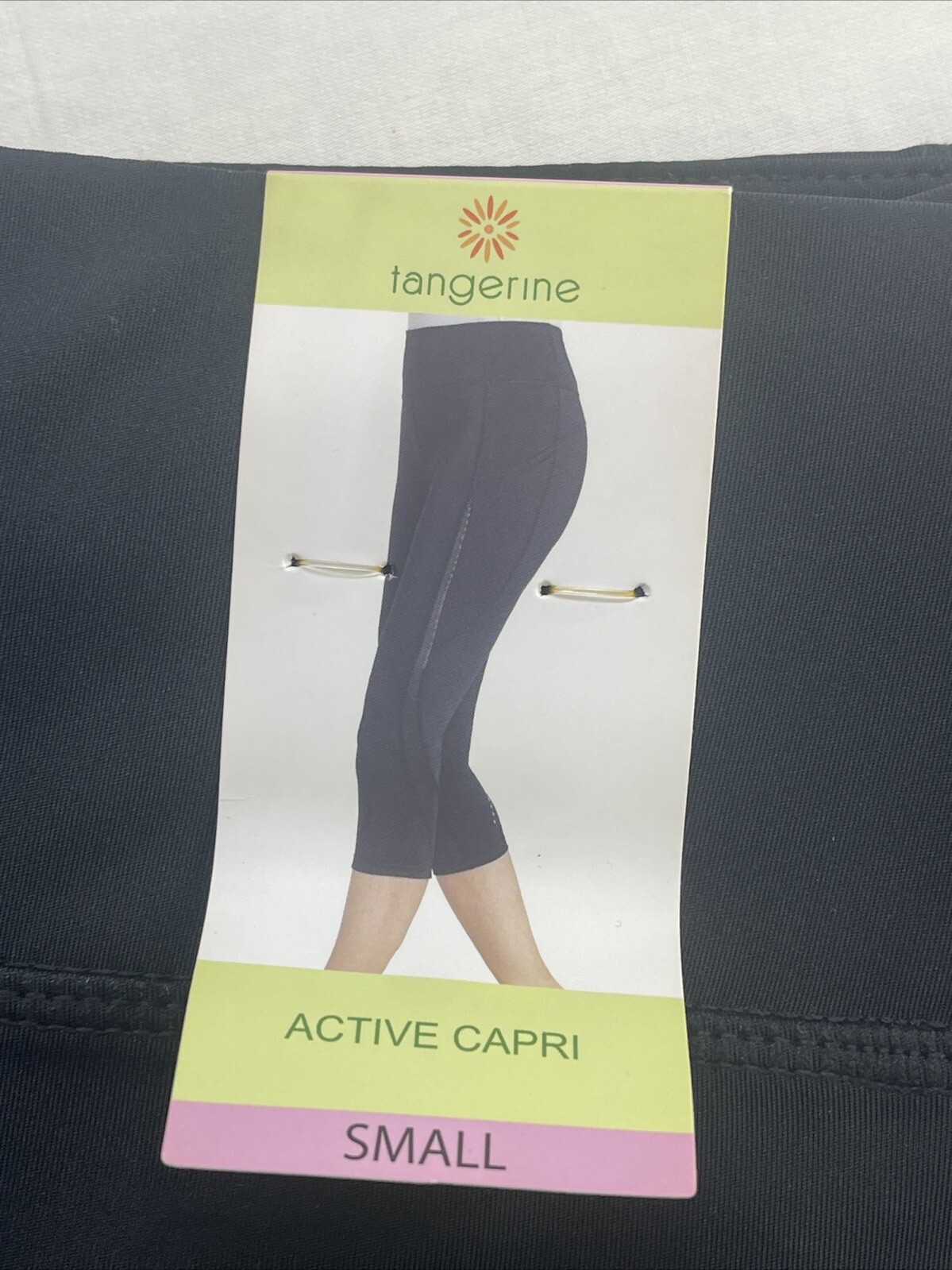Tangerine Women's Black Active Capri Leggings w/Mesh Panel And Pockets Small New